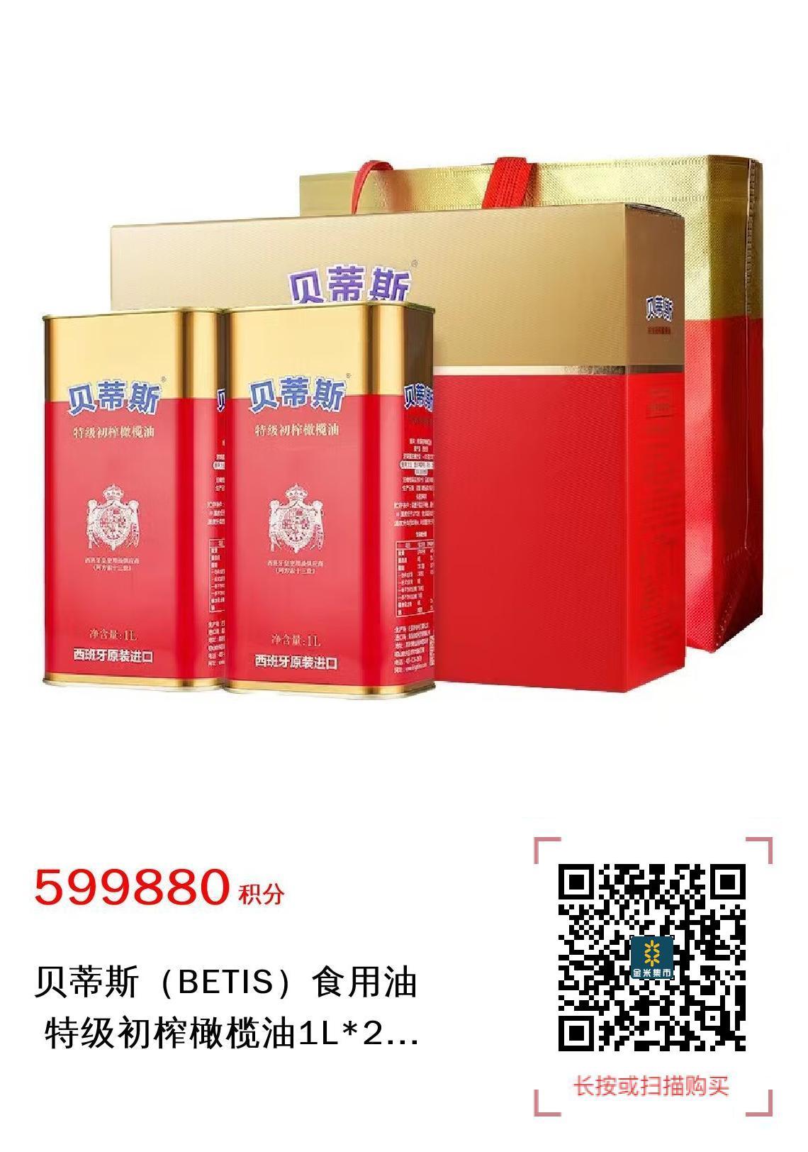 贝蒂斯(BETIS)食用油 特级初榨橄榄油1L*2礼盒 西班牙原装进口 团购送礼(积分兑换)