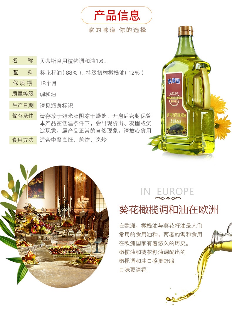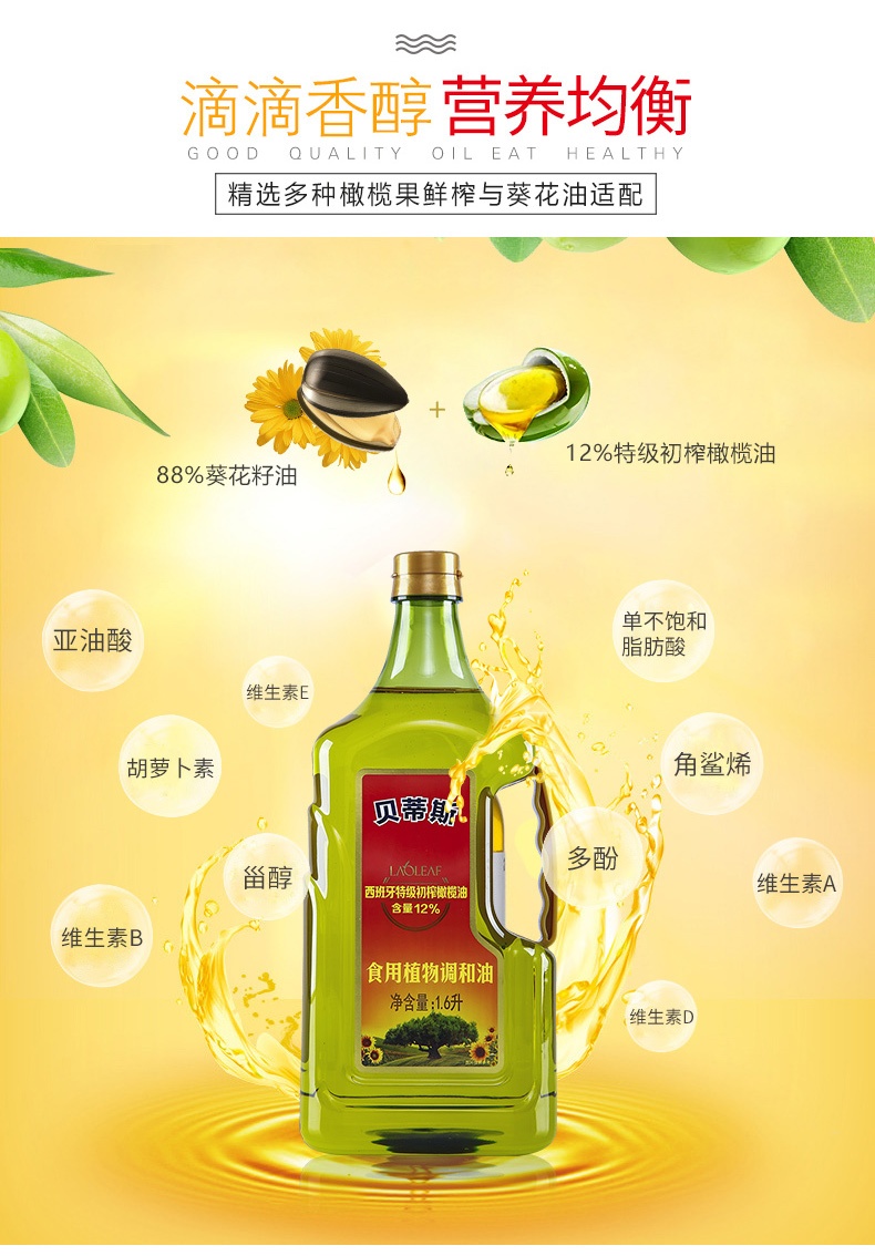 贝蒂斯葵花籽橄榄食用植物调和油1.6L升