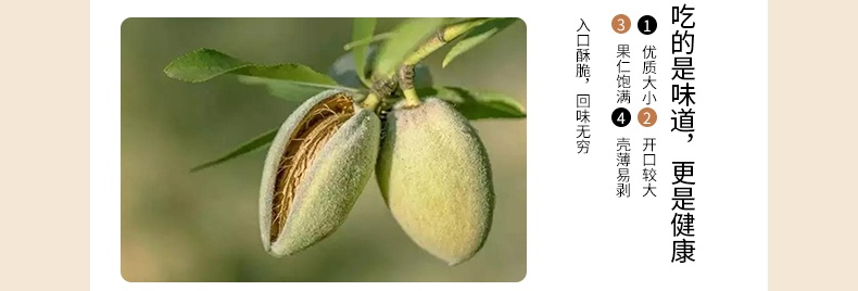源自优良阳光产区,果仁饱满,干爽酥脆,余味悠长