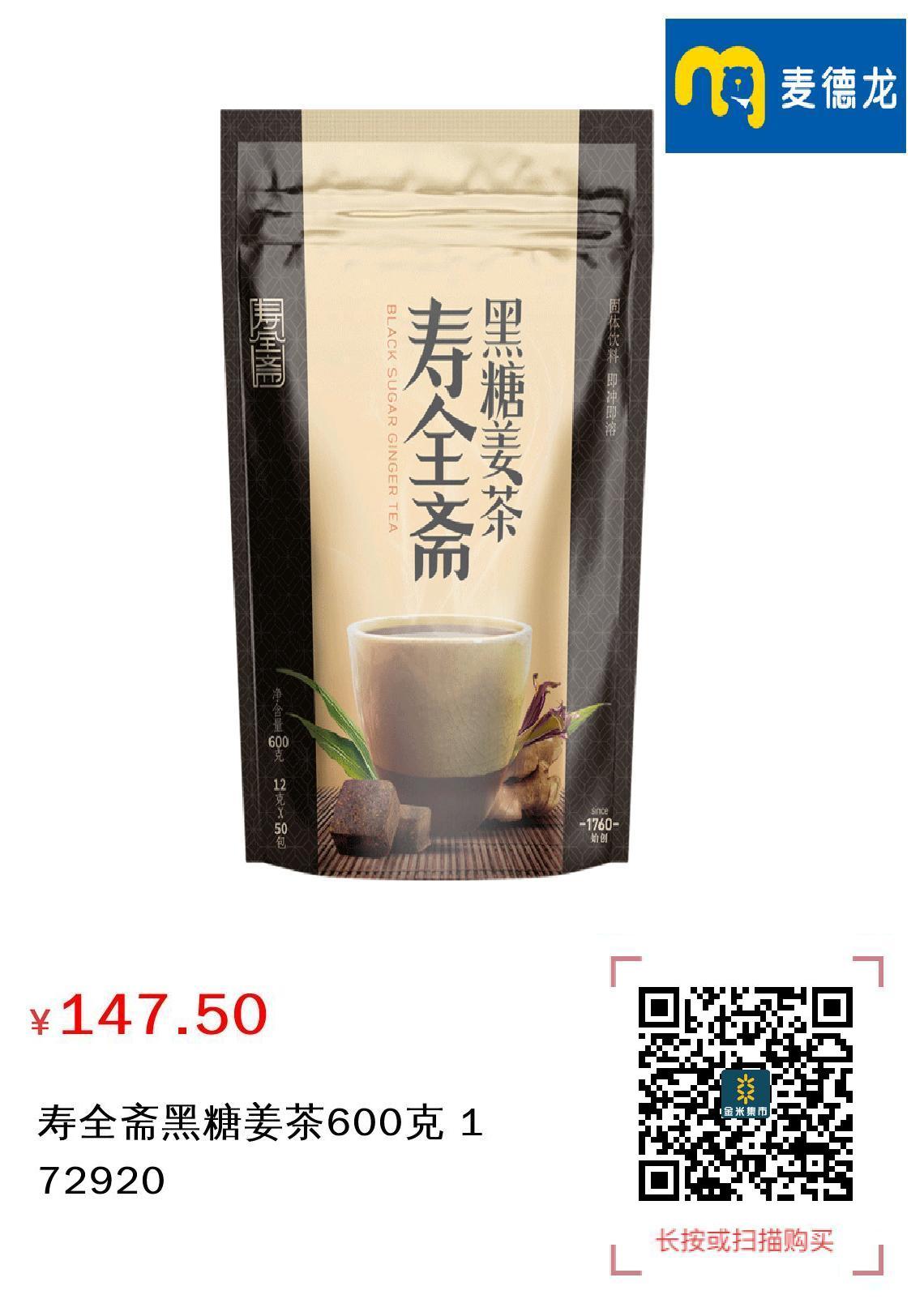 现金/积分 寿全斋黑糖姜茶600克 172920