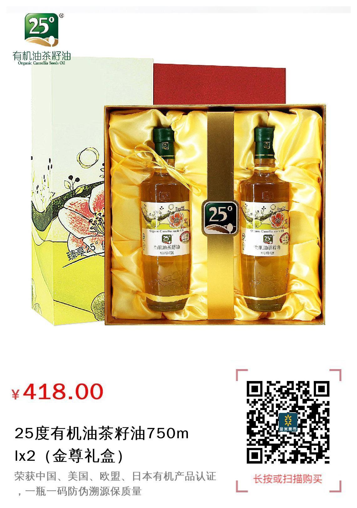 25度有机油茶籽油750mlx2(金尊礼盒)
