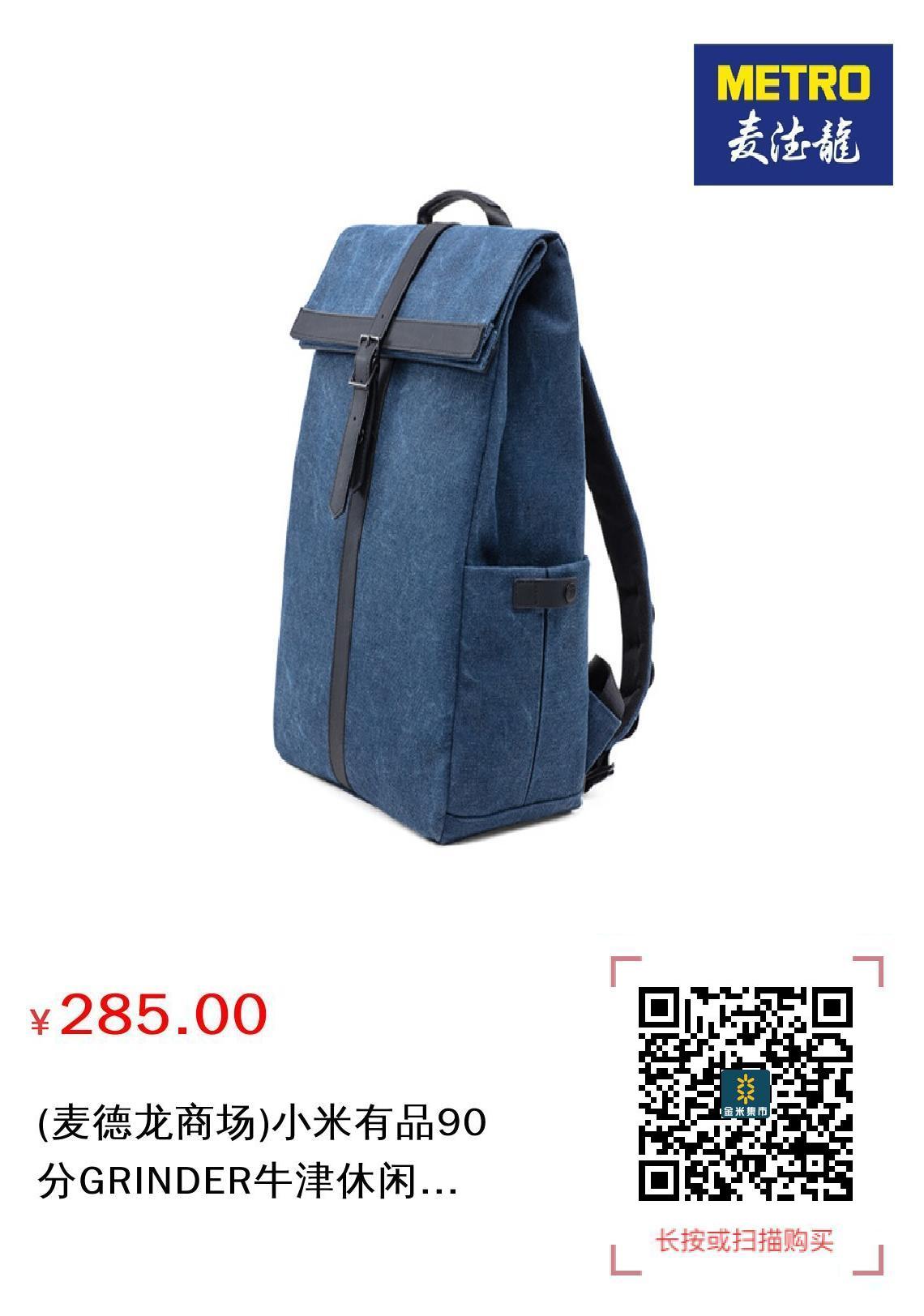 现金/积分 (麦德龙商场)小米有品90分GRINDER牛津休闲双肩包 218772