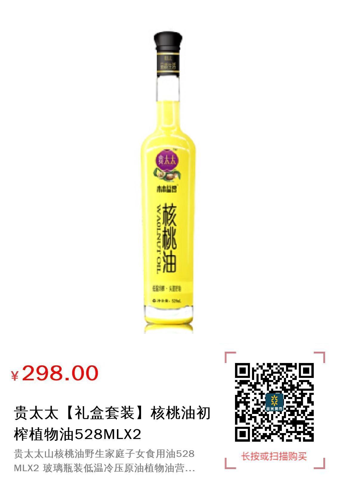 现金/积分 贵太太【礼盒套装】核桃油初榨植物油528MLX2