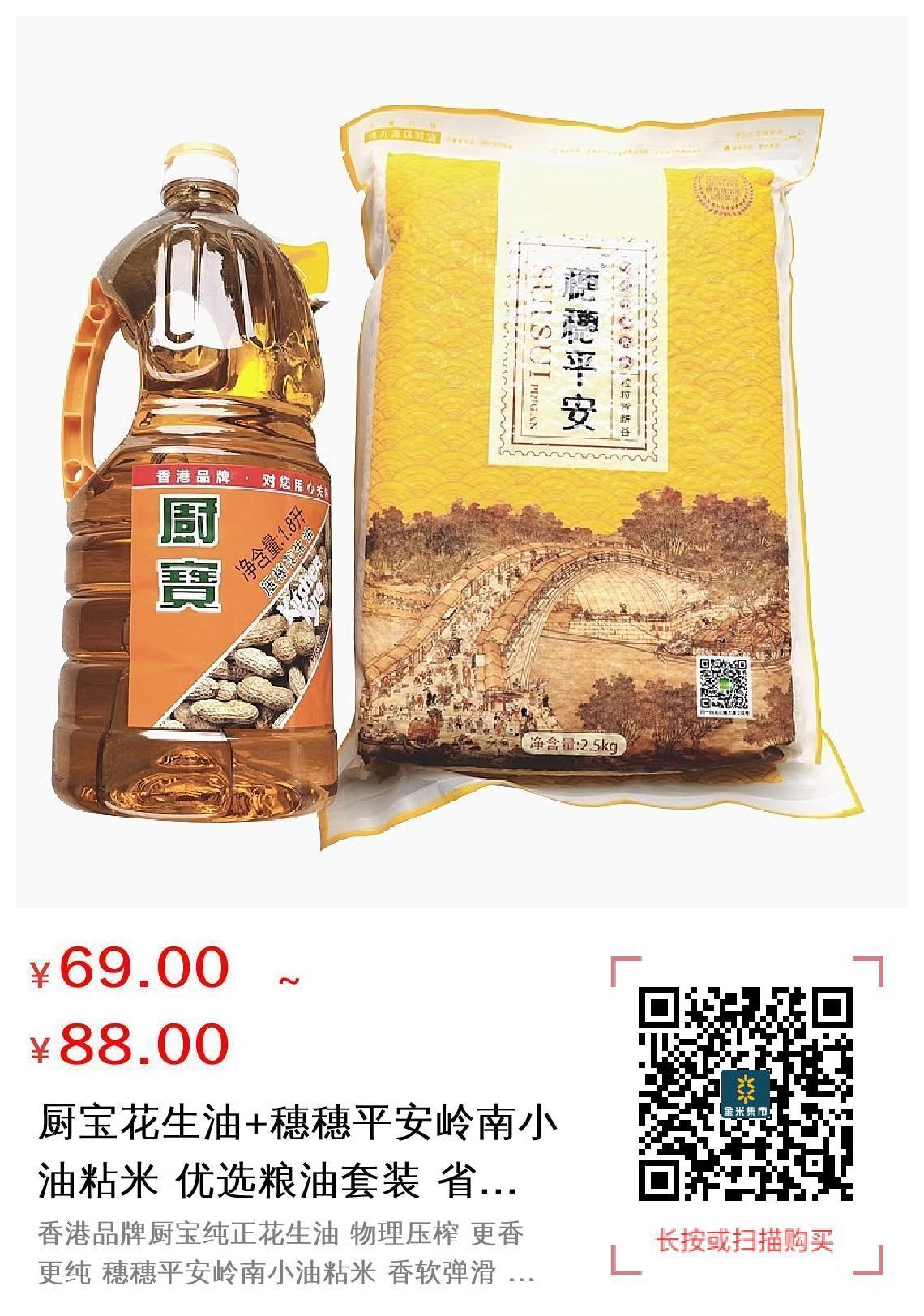 套餐A内容:厨宝花生油900ml+穗穗平安岭南小油粘米2.5kg