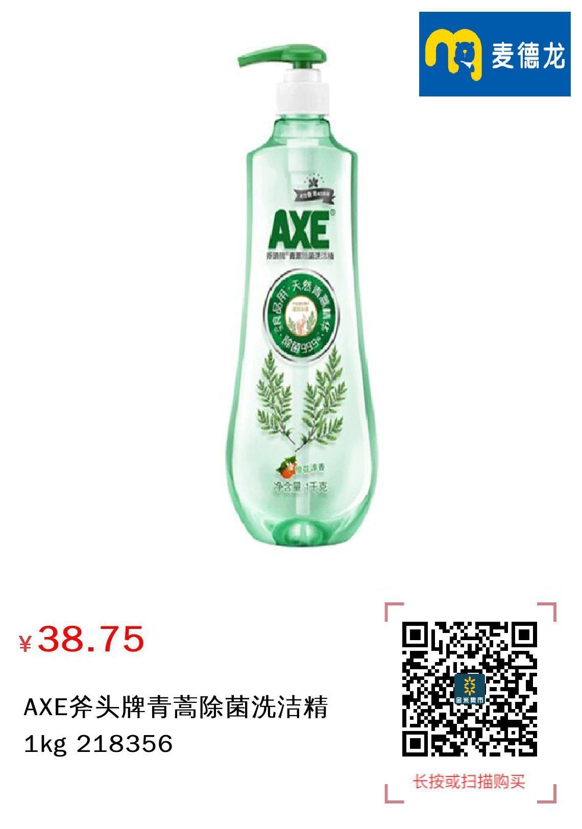 现金/积分 AXE斧头牌青蒿除菌洗洁精1kg 218356