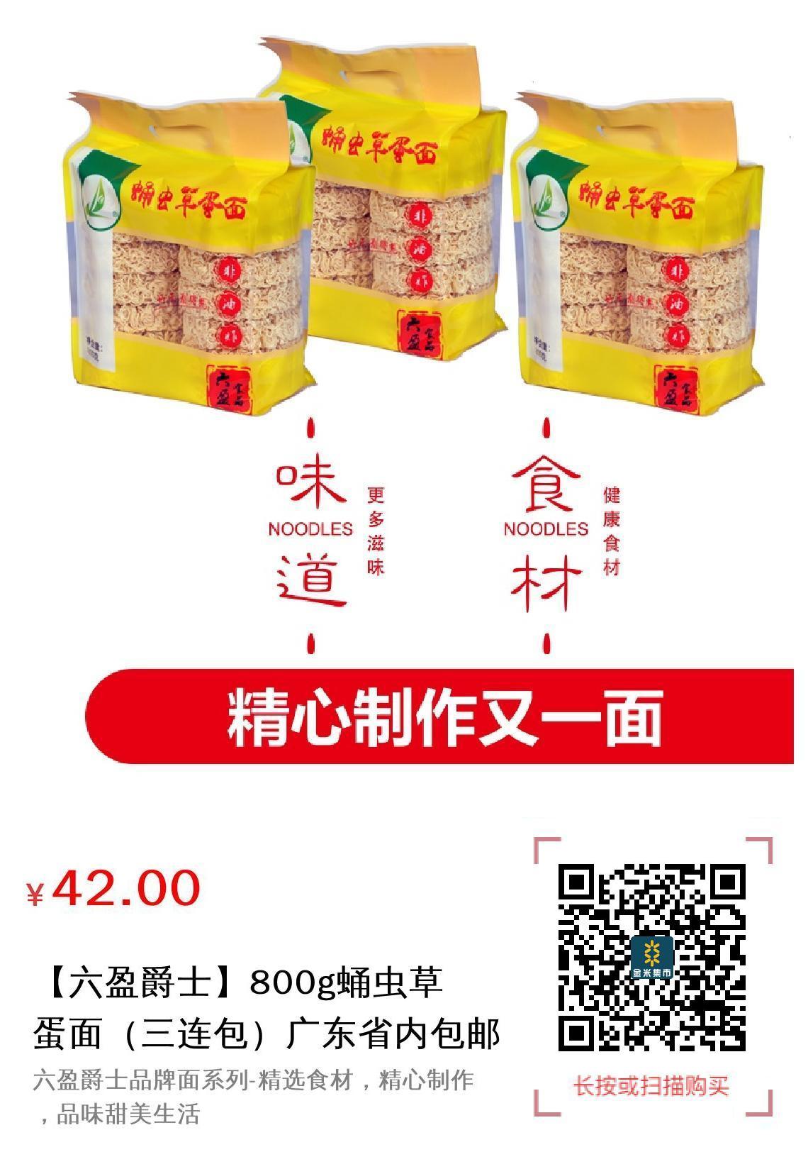 尊敬的客户您好:蛹虫草蛋面(三连包)广东省内包邮 。