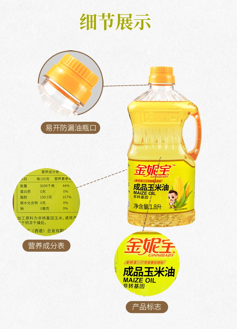 金妮宝1.8L非转基因玉米油