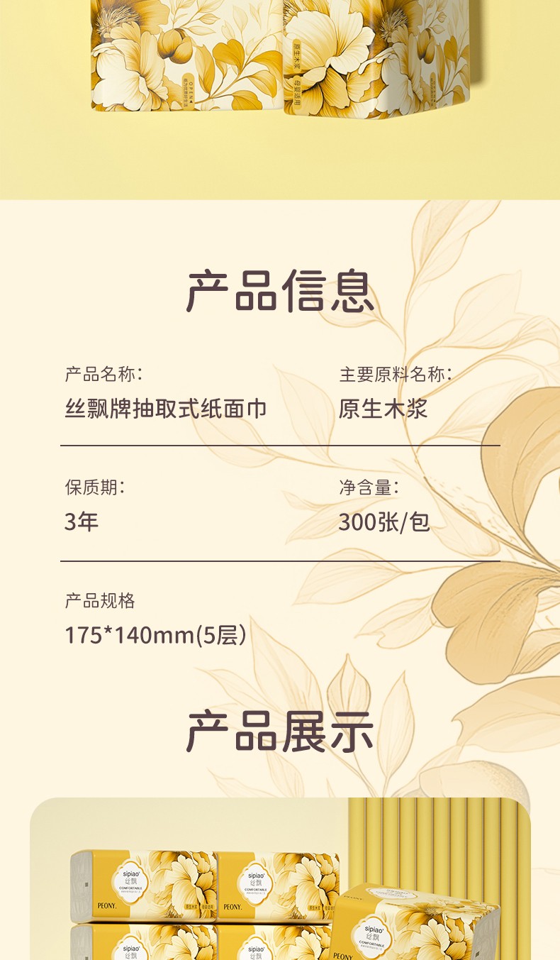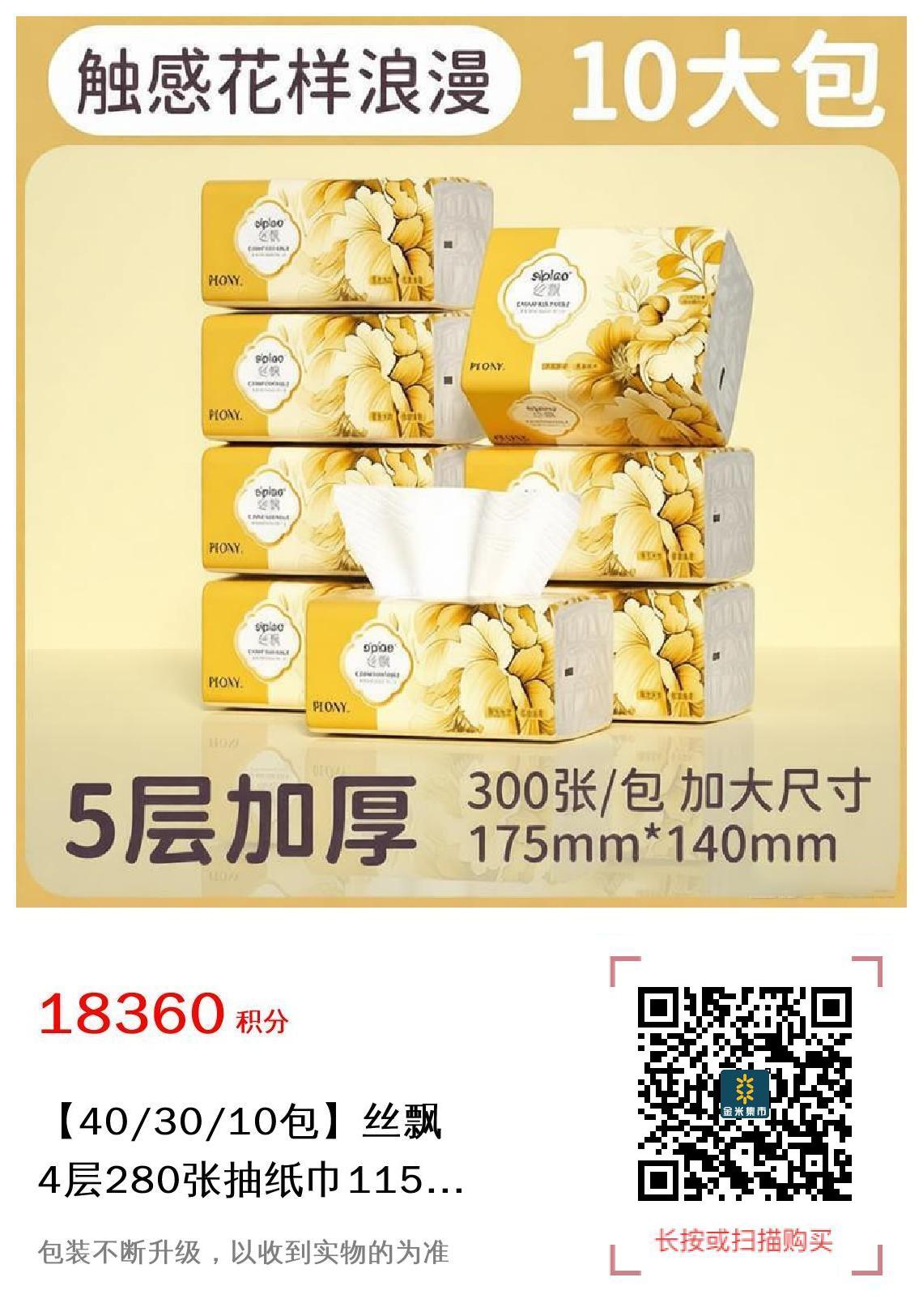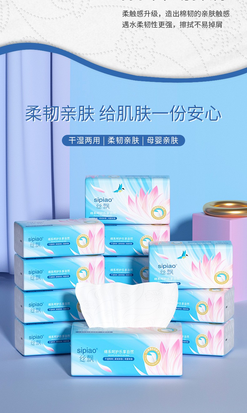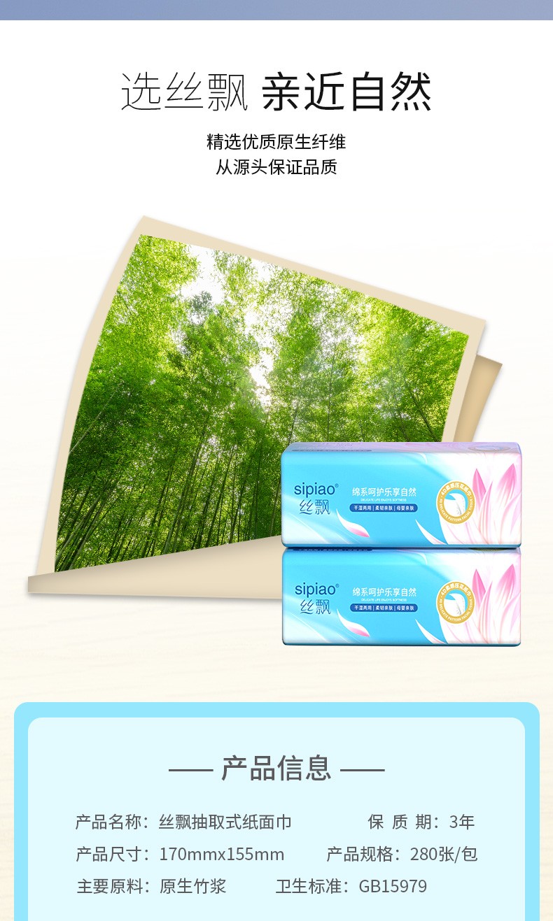 【40/30/10包】丝飘4层280张抽纸巾1151面巾纸现金