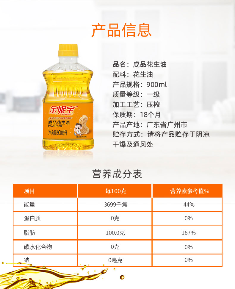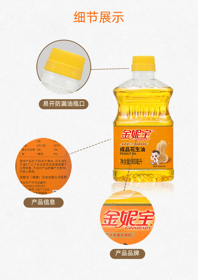 金妮宝花生油900毫升