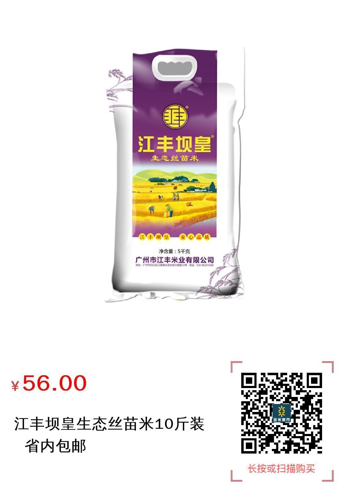 推广 江丰坝皇生态丝苗米10斤装 省内包邮