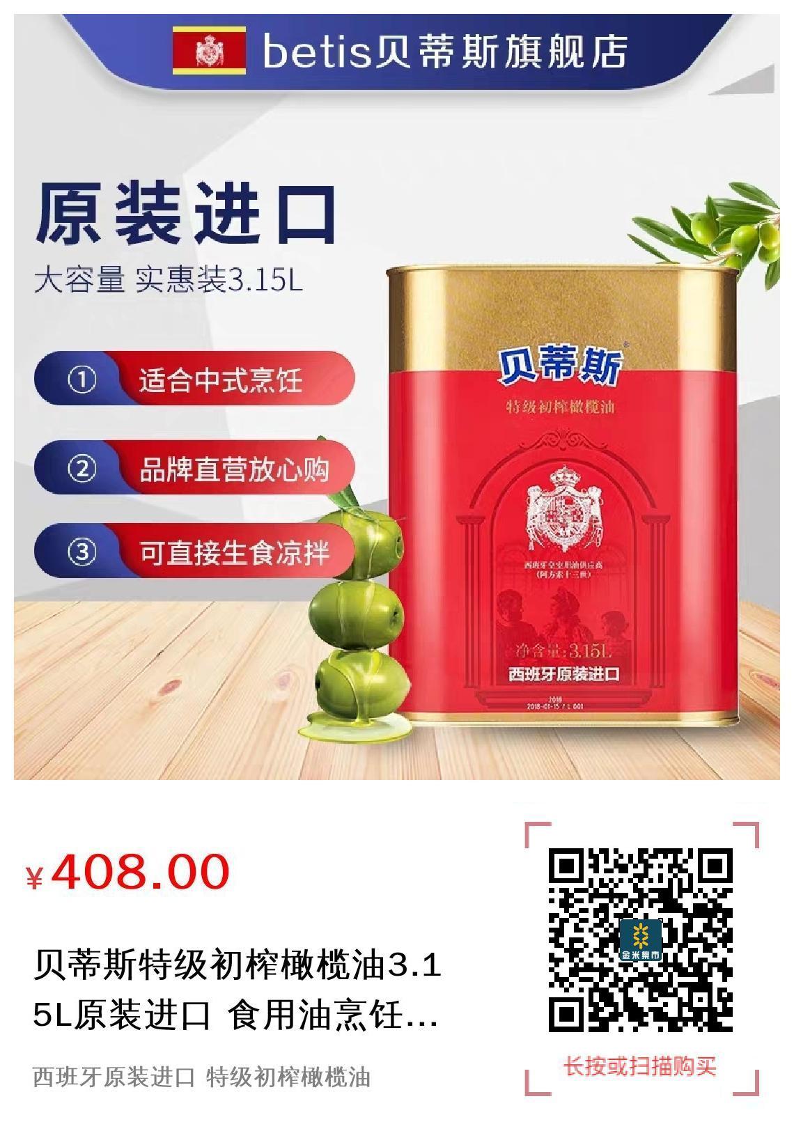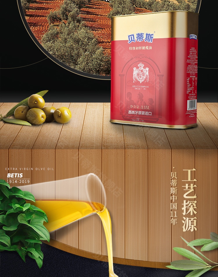 贝蒂斯特级初榨橄榄油3.15L原装进口 食用油烹饪炒菜