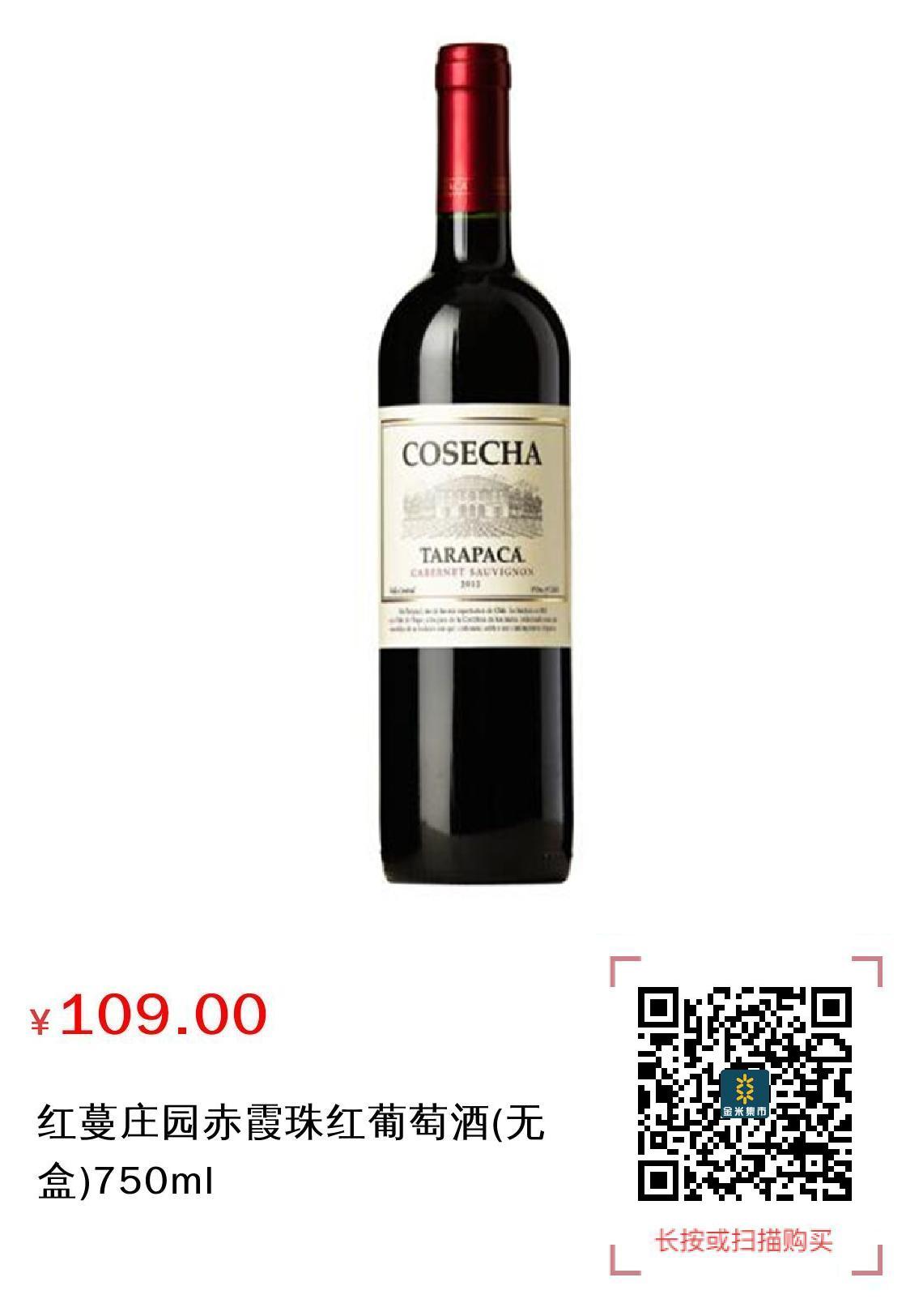 现金/积分 红蔓庄园赤霞珠红葡萄酒(无盒)750ml