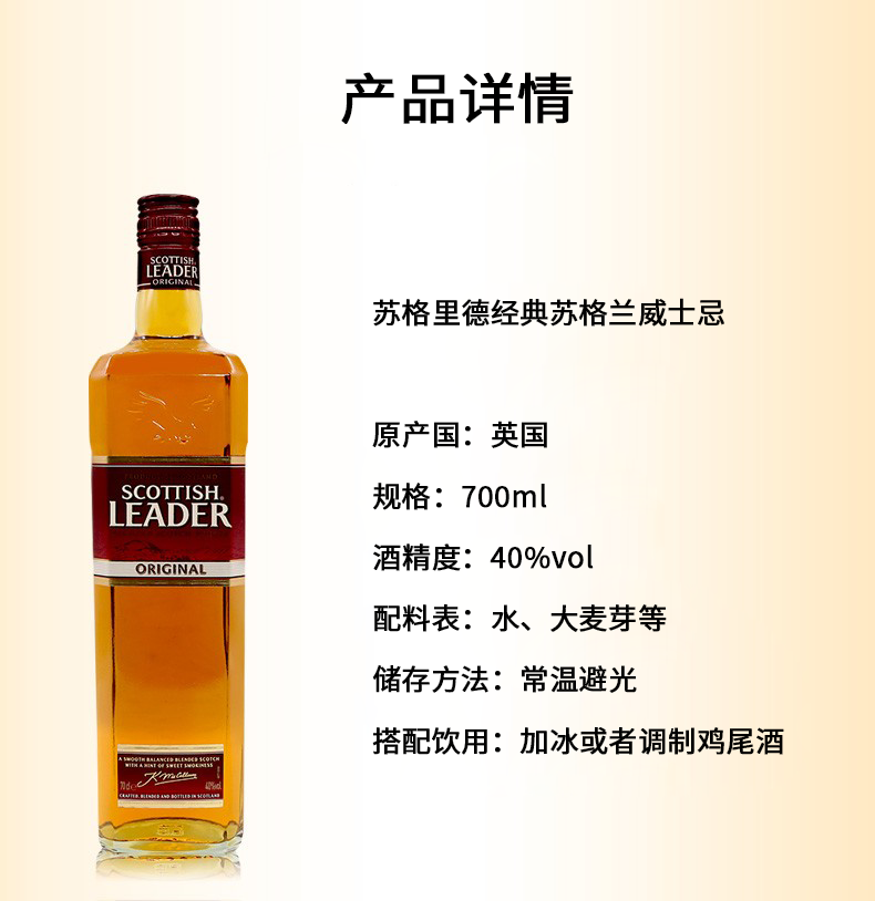 现金/积分 苏格里德经典苏格兰威士忌700ml两瓶