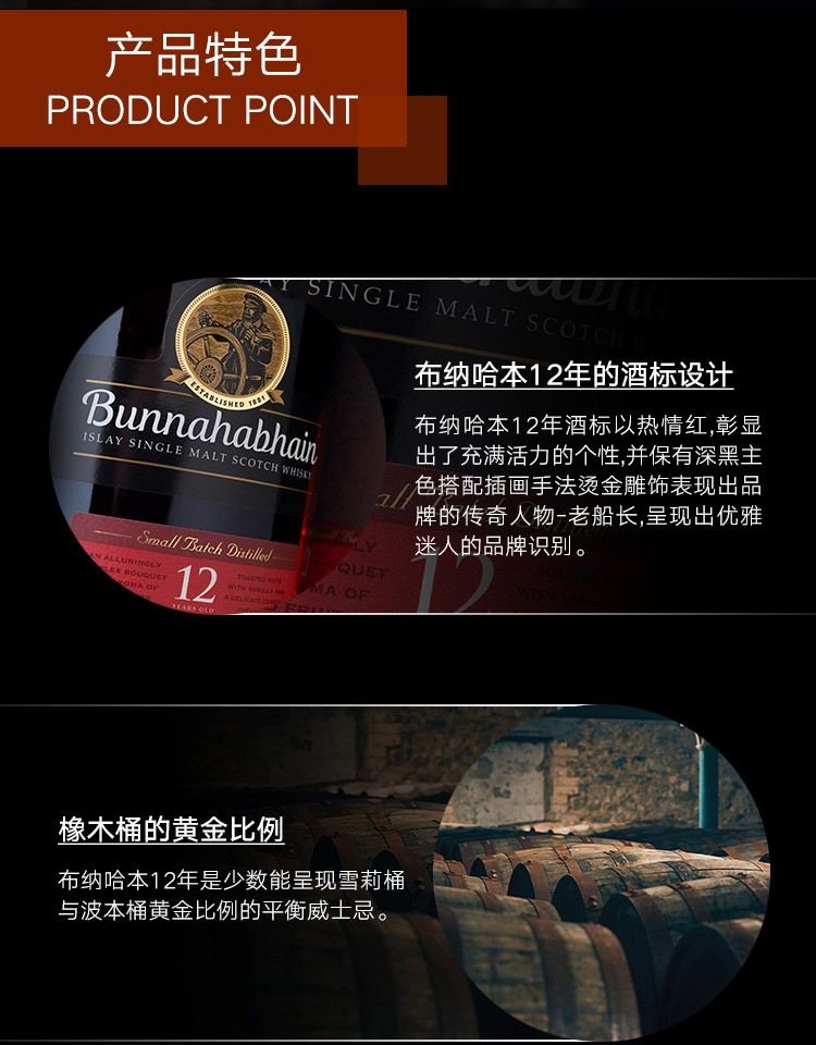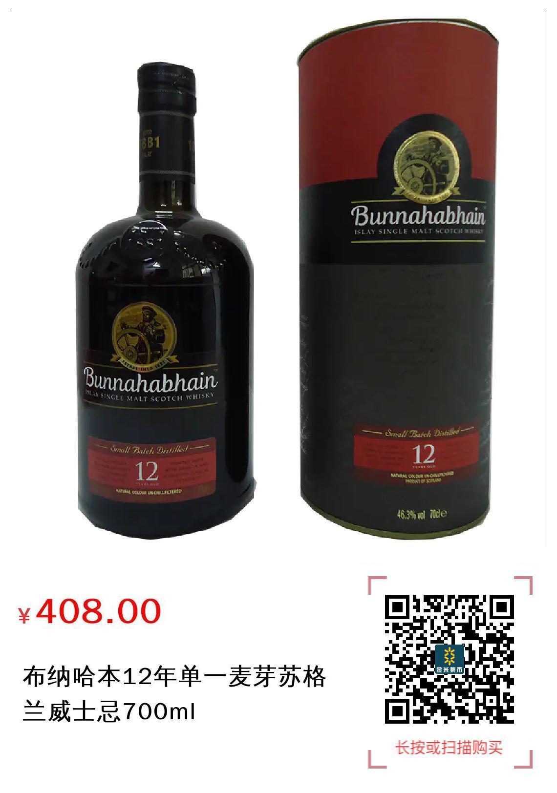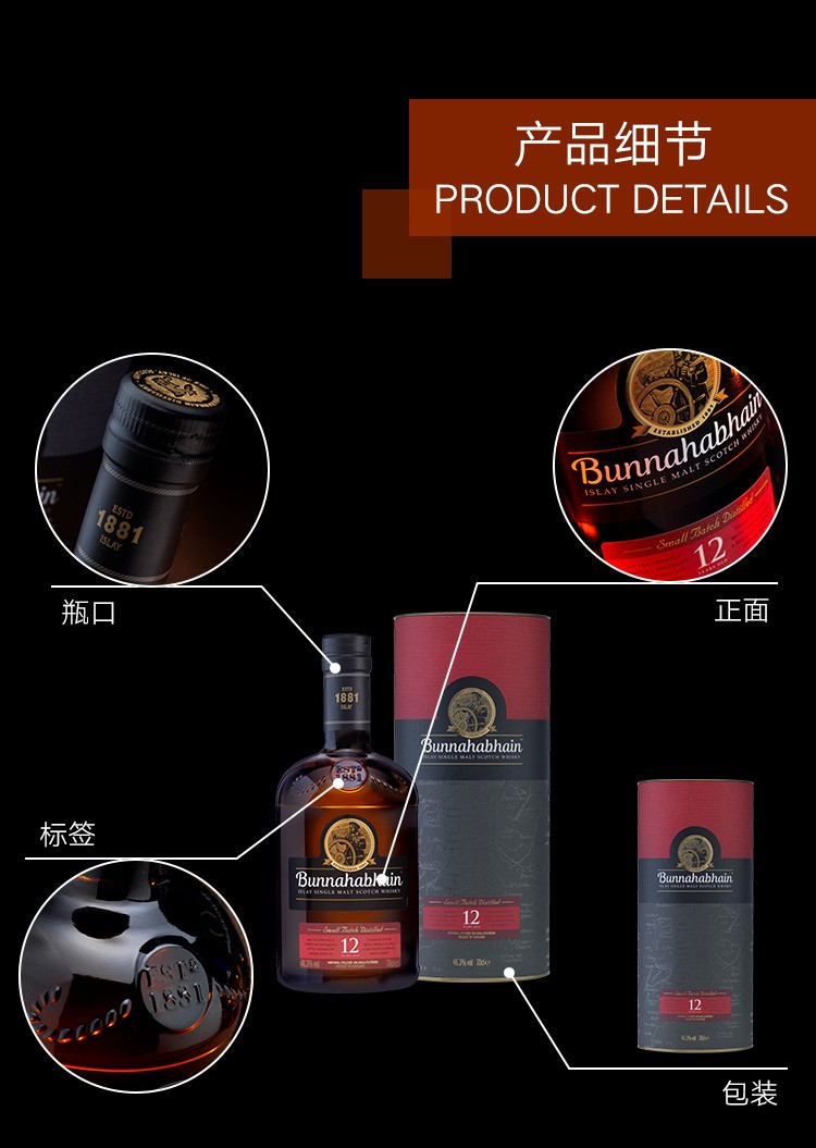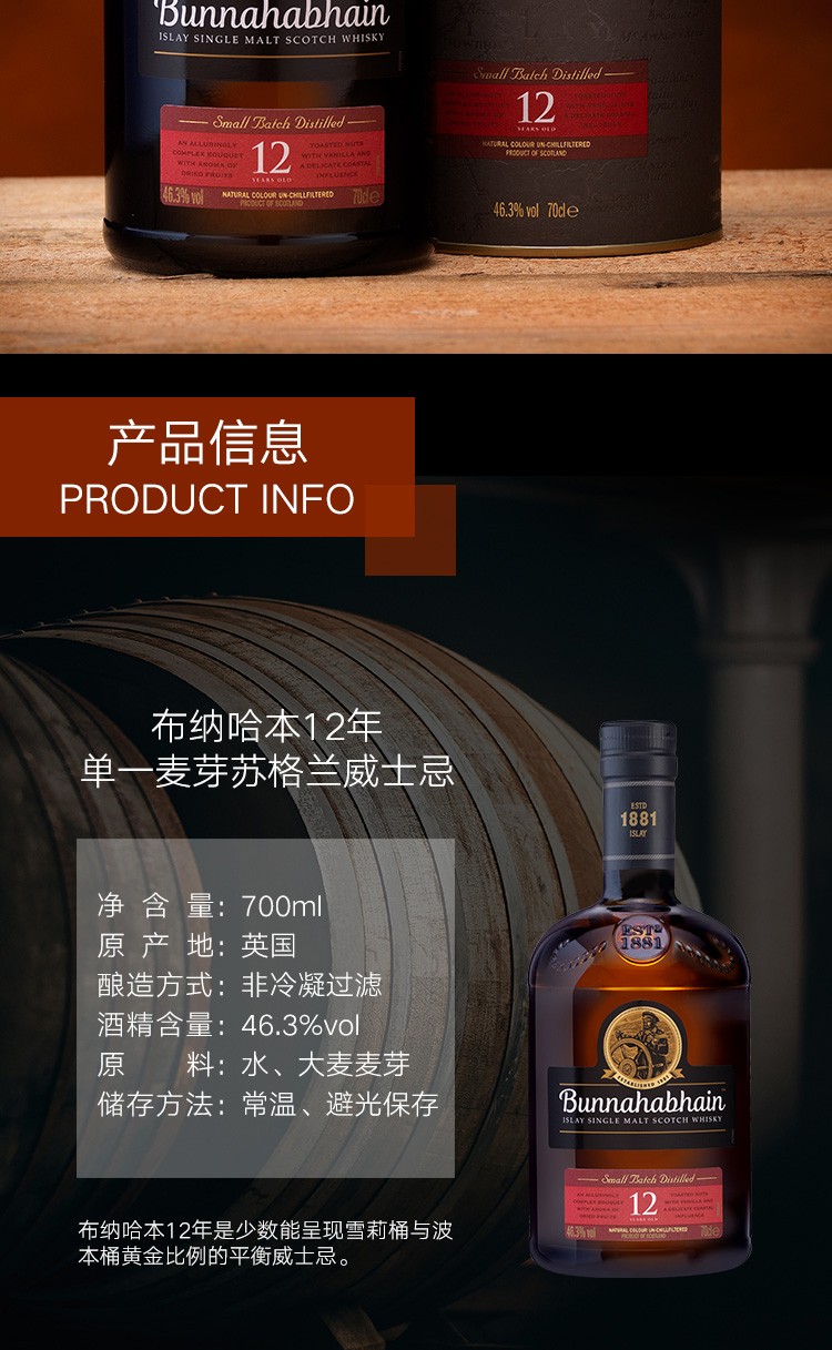 现金/积分 布纳哈本12年单一麦芽苏格兰威士忌700ml