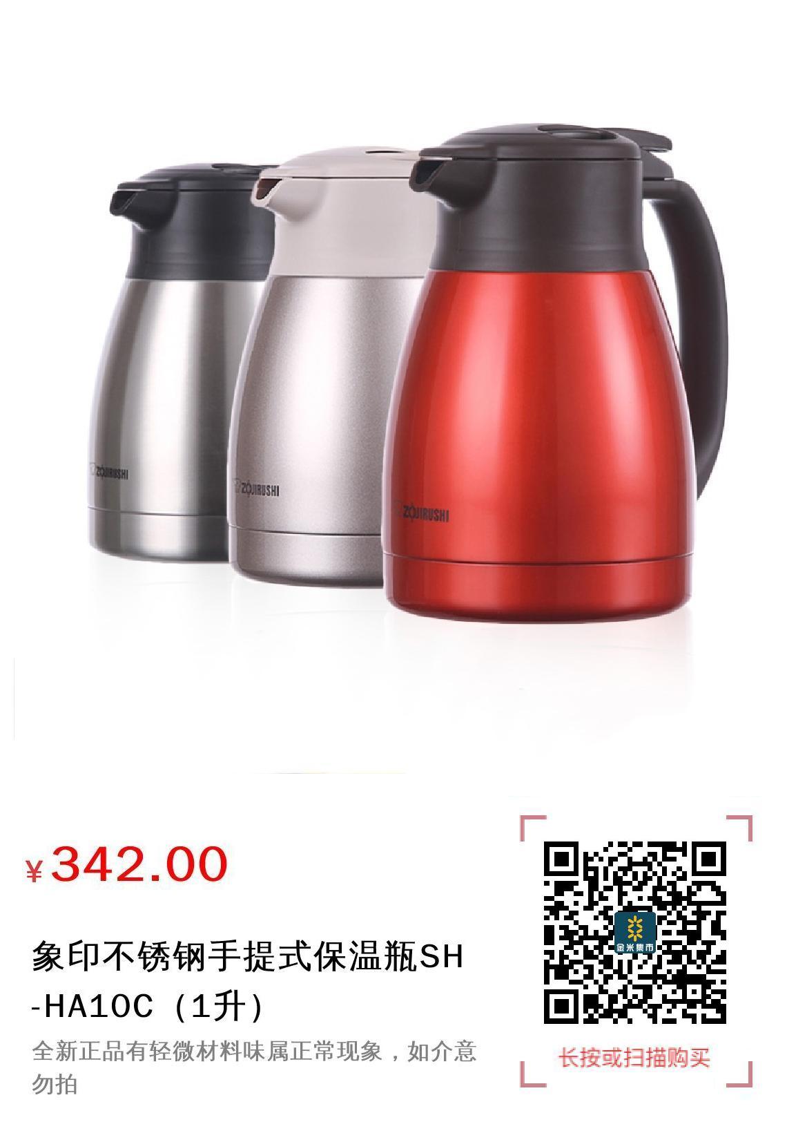 现金/积分 象印不锈钢手提式保温瓶SH-HA10C(1升)