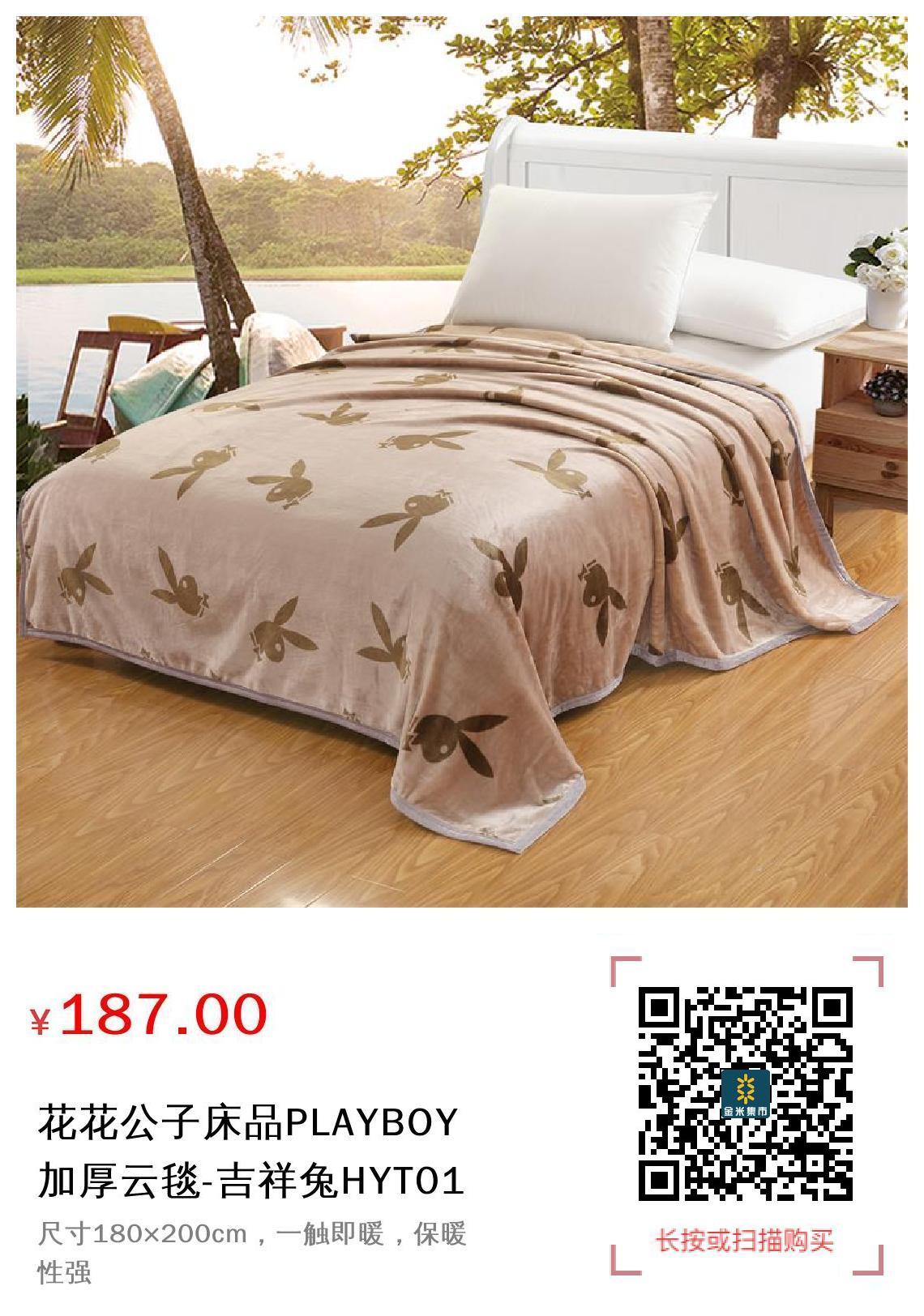 现金/积分 花花公子床品PLAYBOY加厚云毯-吉祥兔HYT01