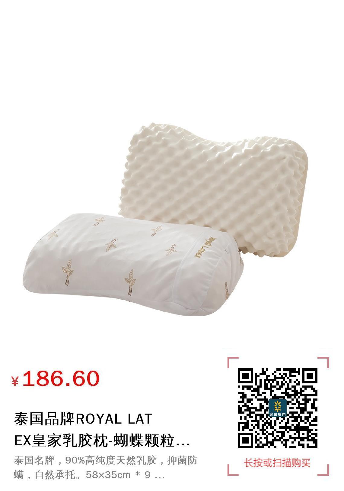 现金/积分 泰国品牌ROYAL LATEX皇家乳胶枕-蝴蝶颗粒款HRL-02