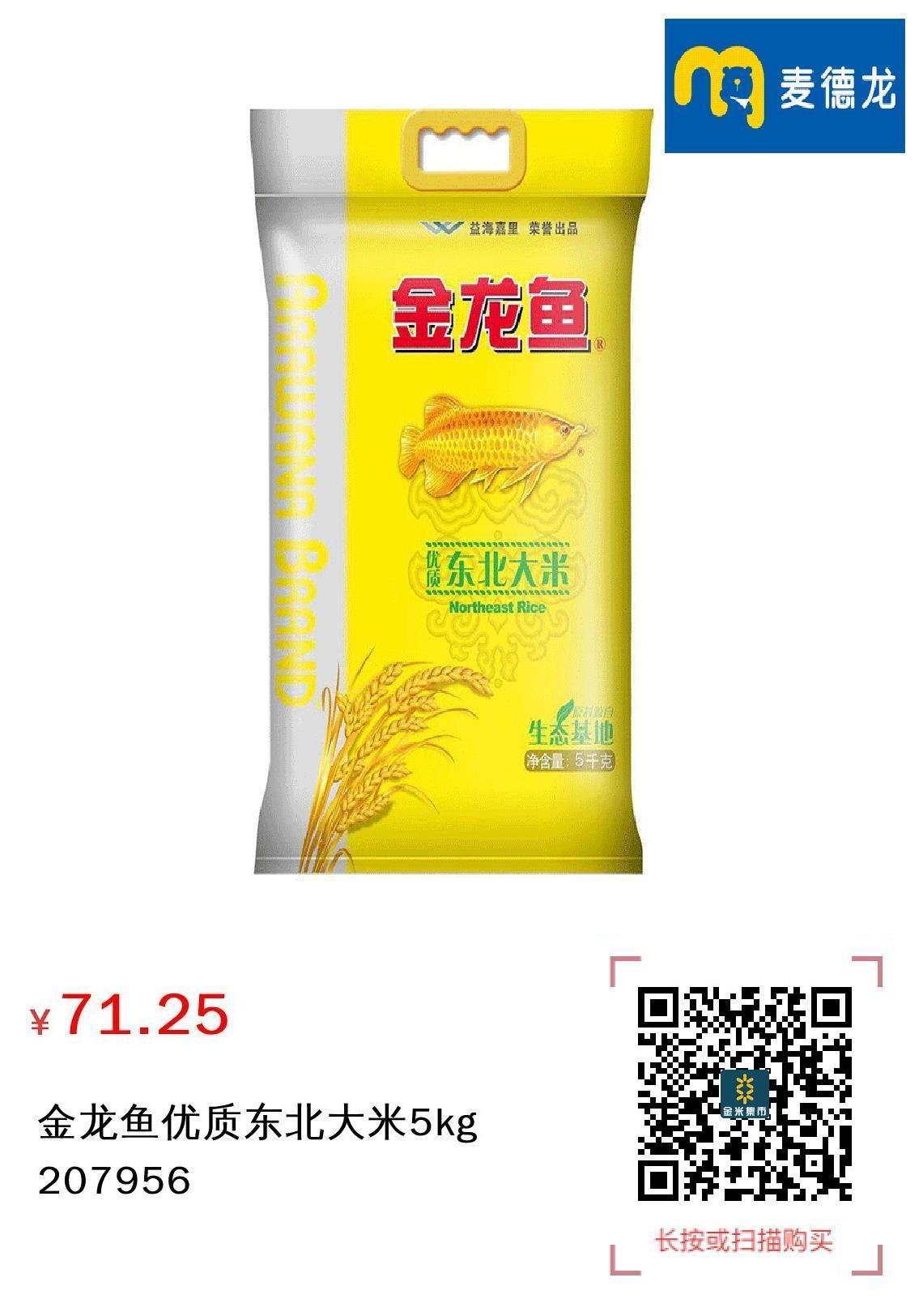 现金/积分 金龙鱼优质东北大米5kg 207956