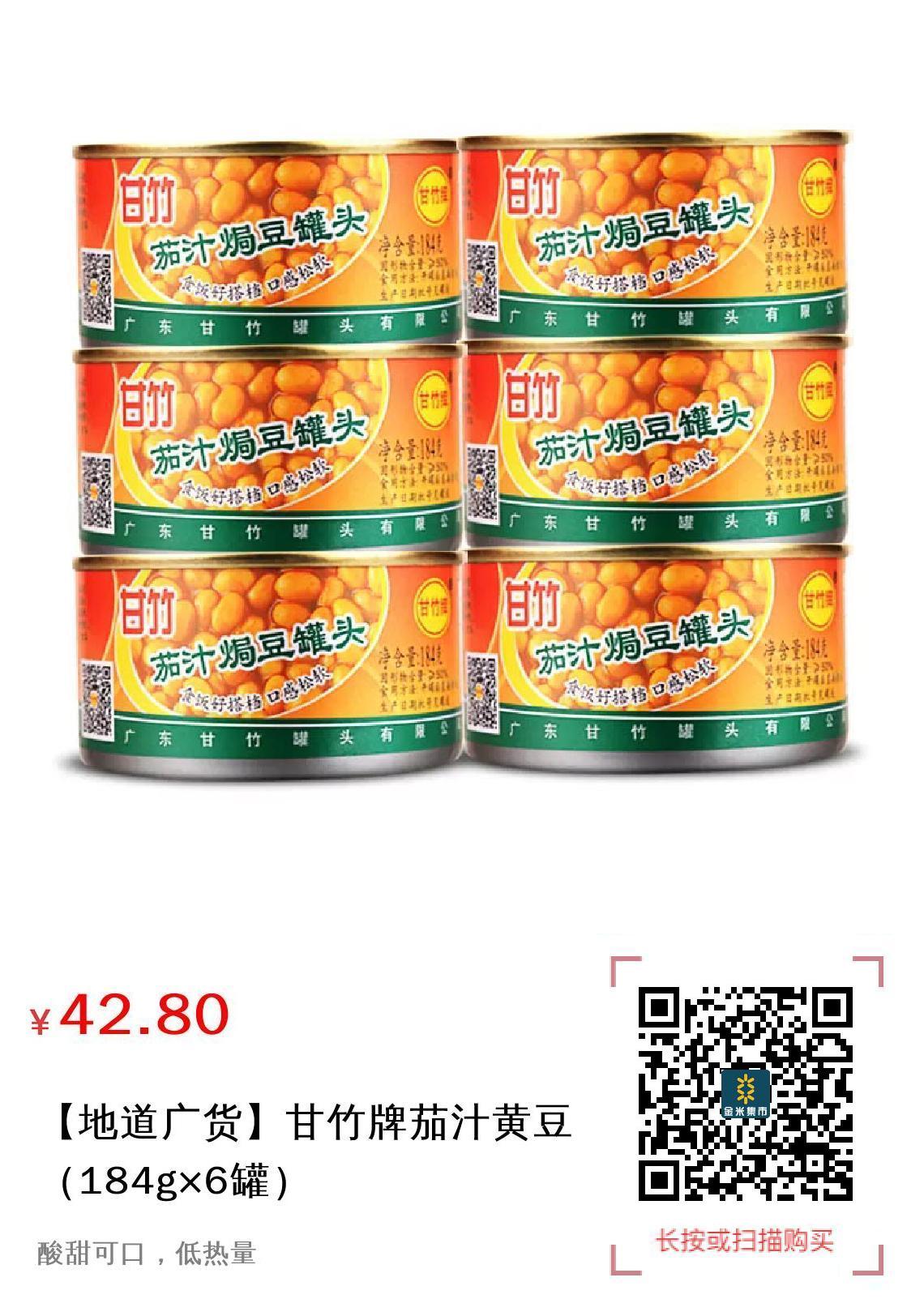 推广 现金/积分 【地道广货】甘竹牌茄汁黄豆(184g×6罐)