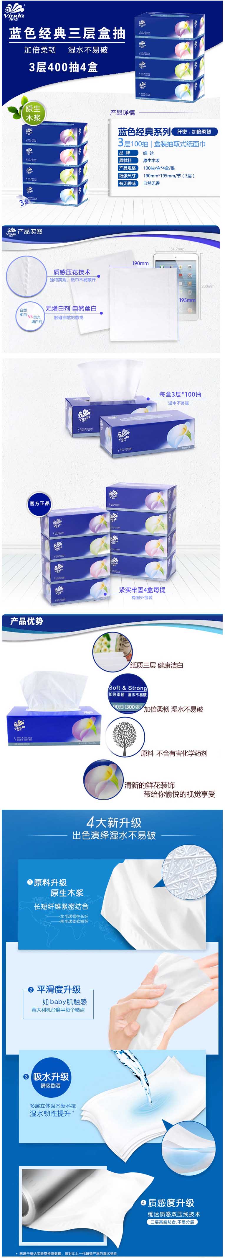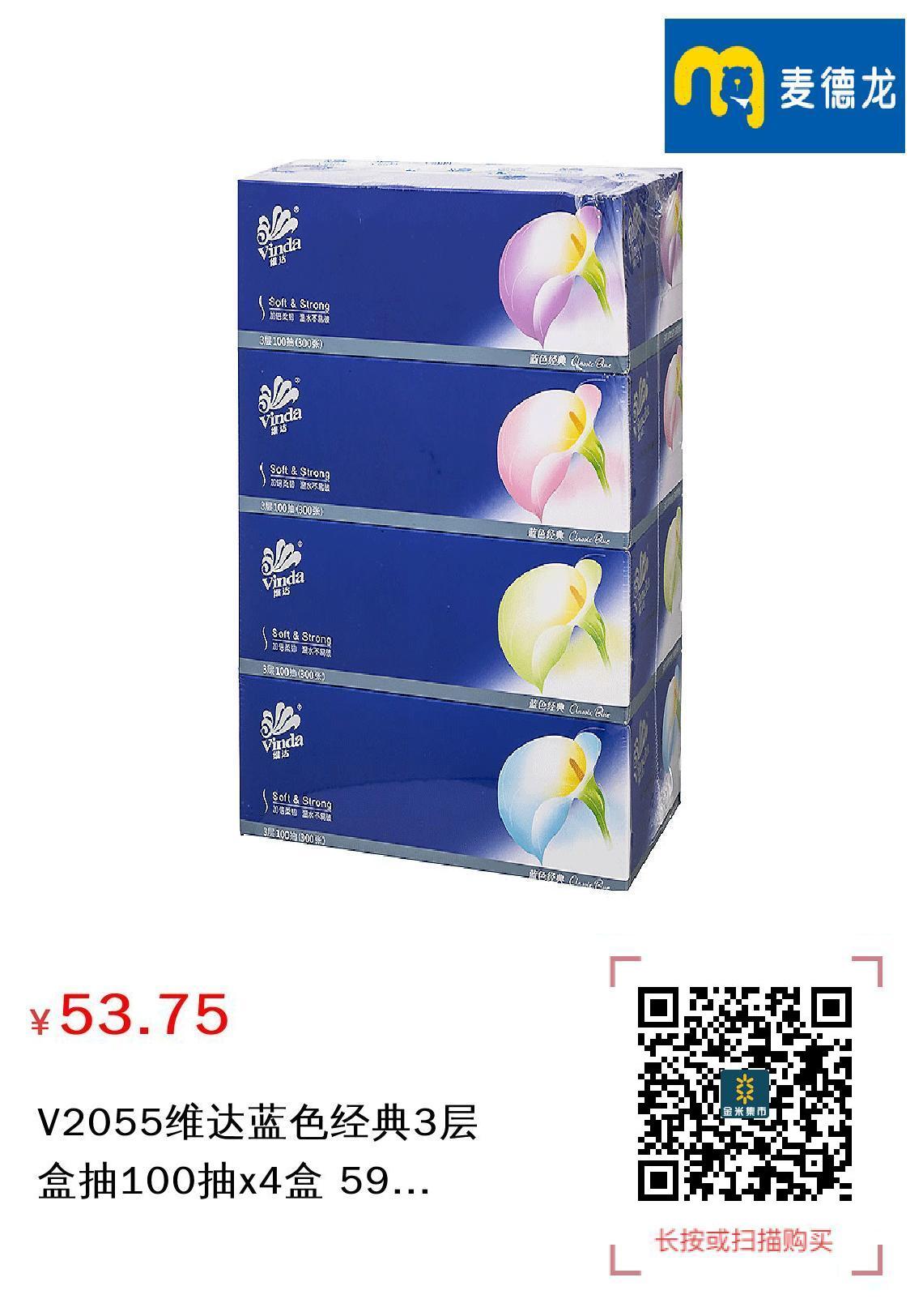 现金/积分 V2055维达蓝色经典3层盒抽100抽x4盒 590836