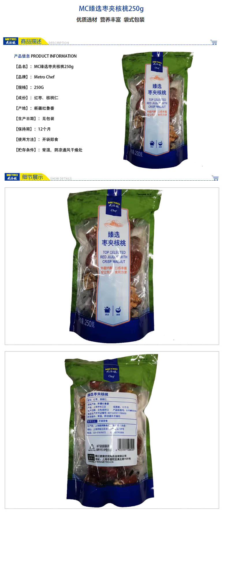 MC臻选枣夹核桃250g 218654