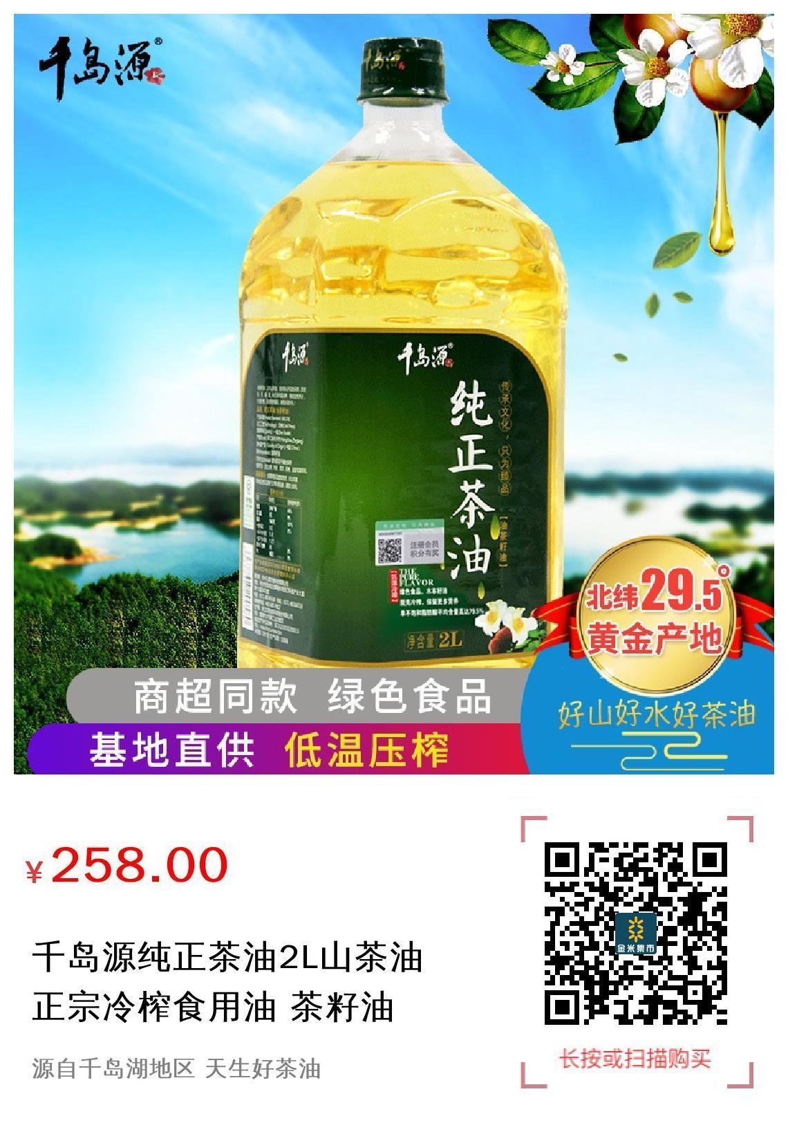 推广 现金/积分 千岛源纯正茶油2L山茶油 正宗冷榨食用油 茶籽油