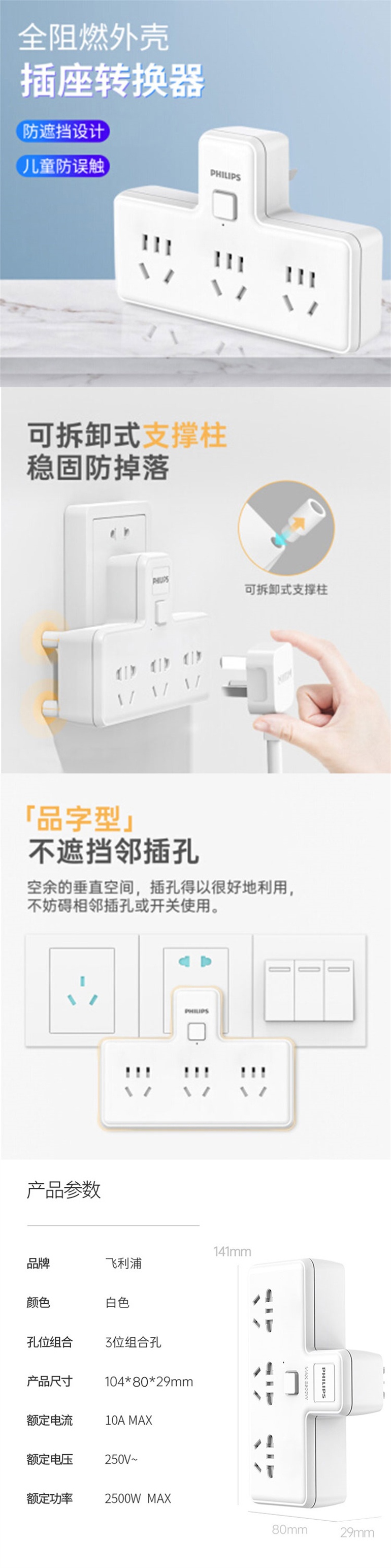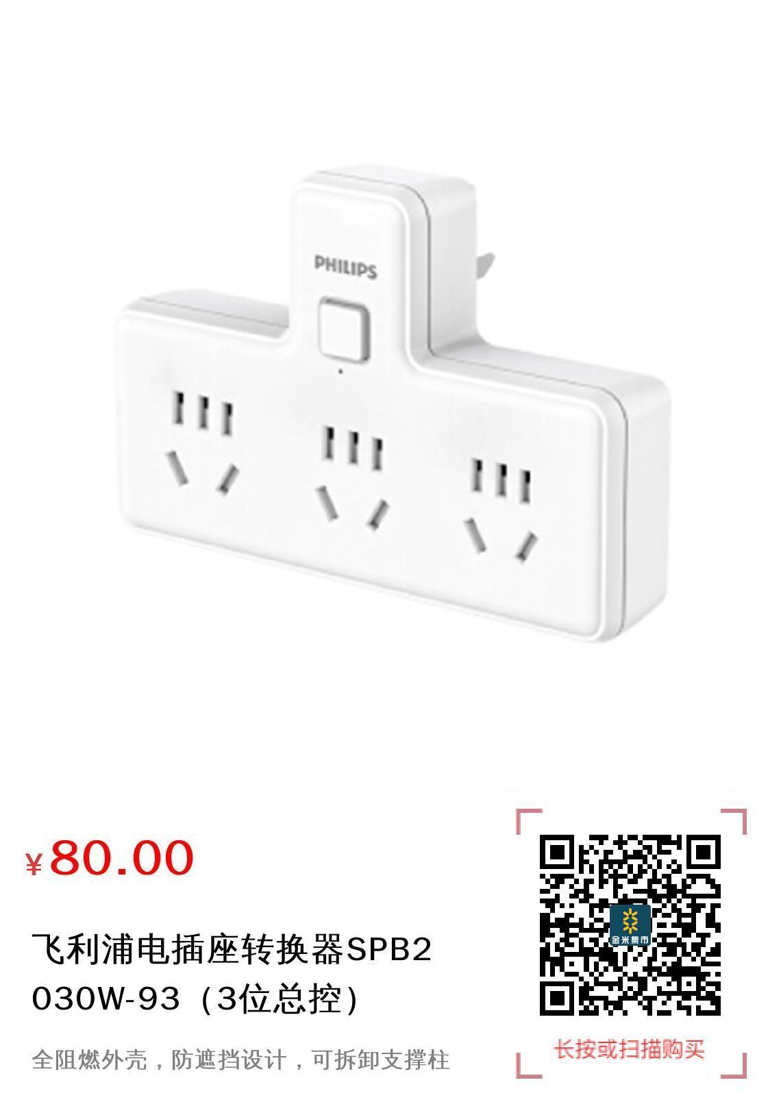 现金/积分 飞利浦电插座转换器SPB2030W-93(3位总控)
