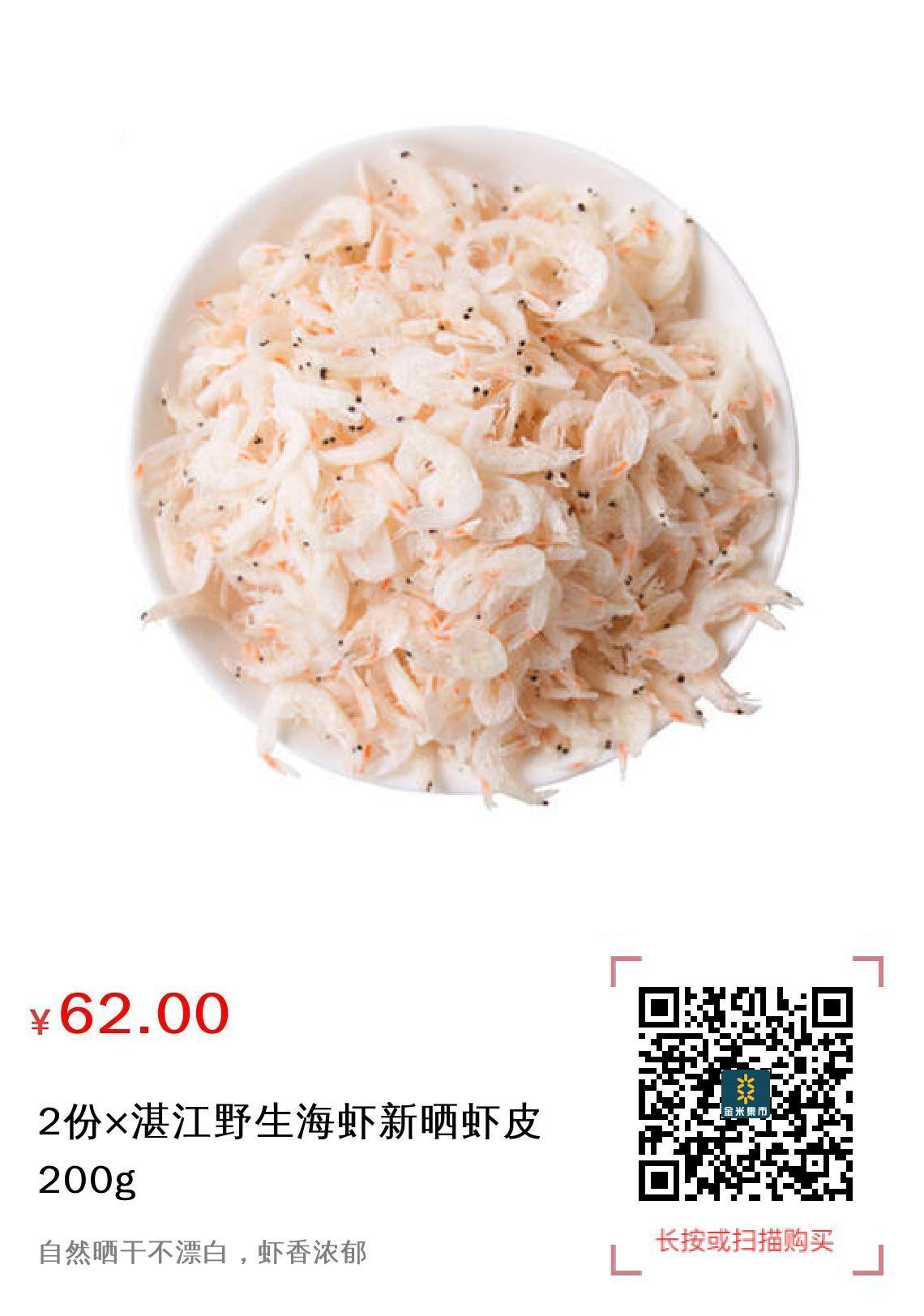 推广 现金/积分 2份×湛江野生海虾新晒虾皮200g