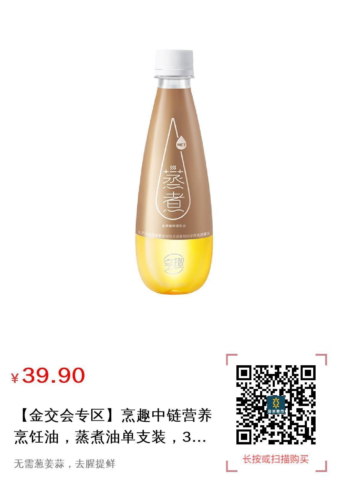 【金交会专区】烹趣中链营养烹饪油,蒸煮油单支装,330ml一瓶