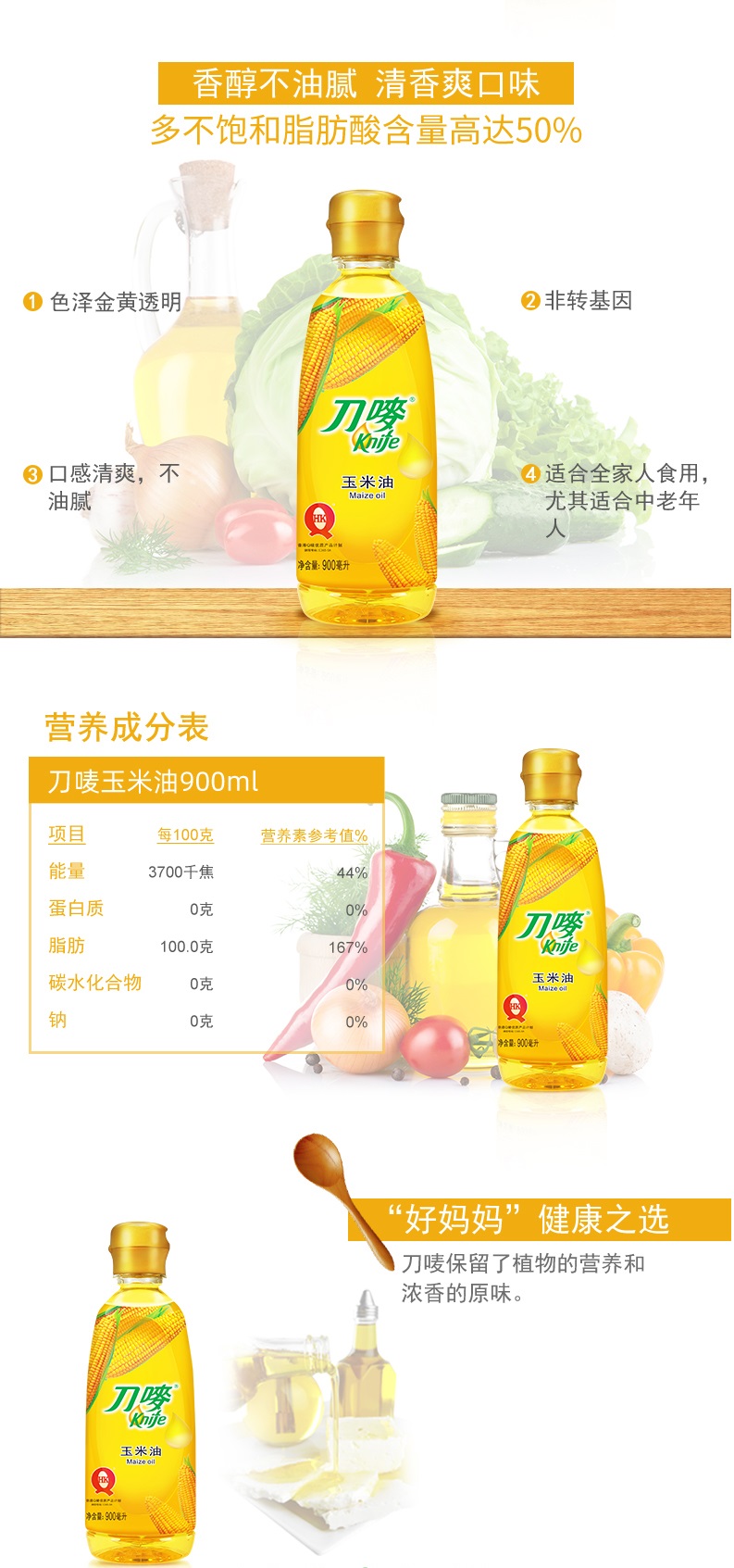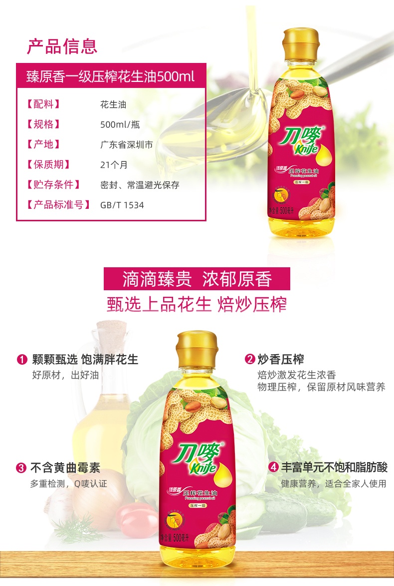 刀唛花生油500ml和刀唛玉米油900ml组合装