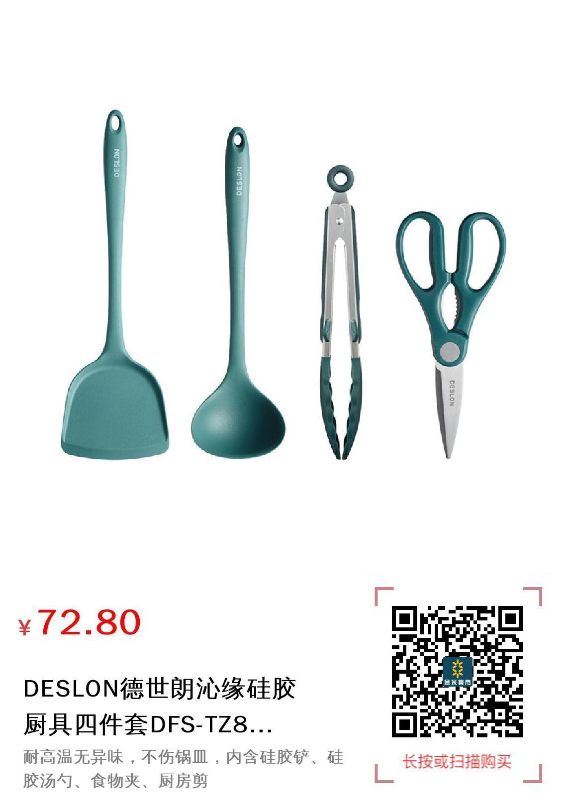 推广 现金/积分 DESLON德世朗沁缘硅胶厨具四件套DFS-TZ820-4A