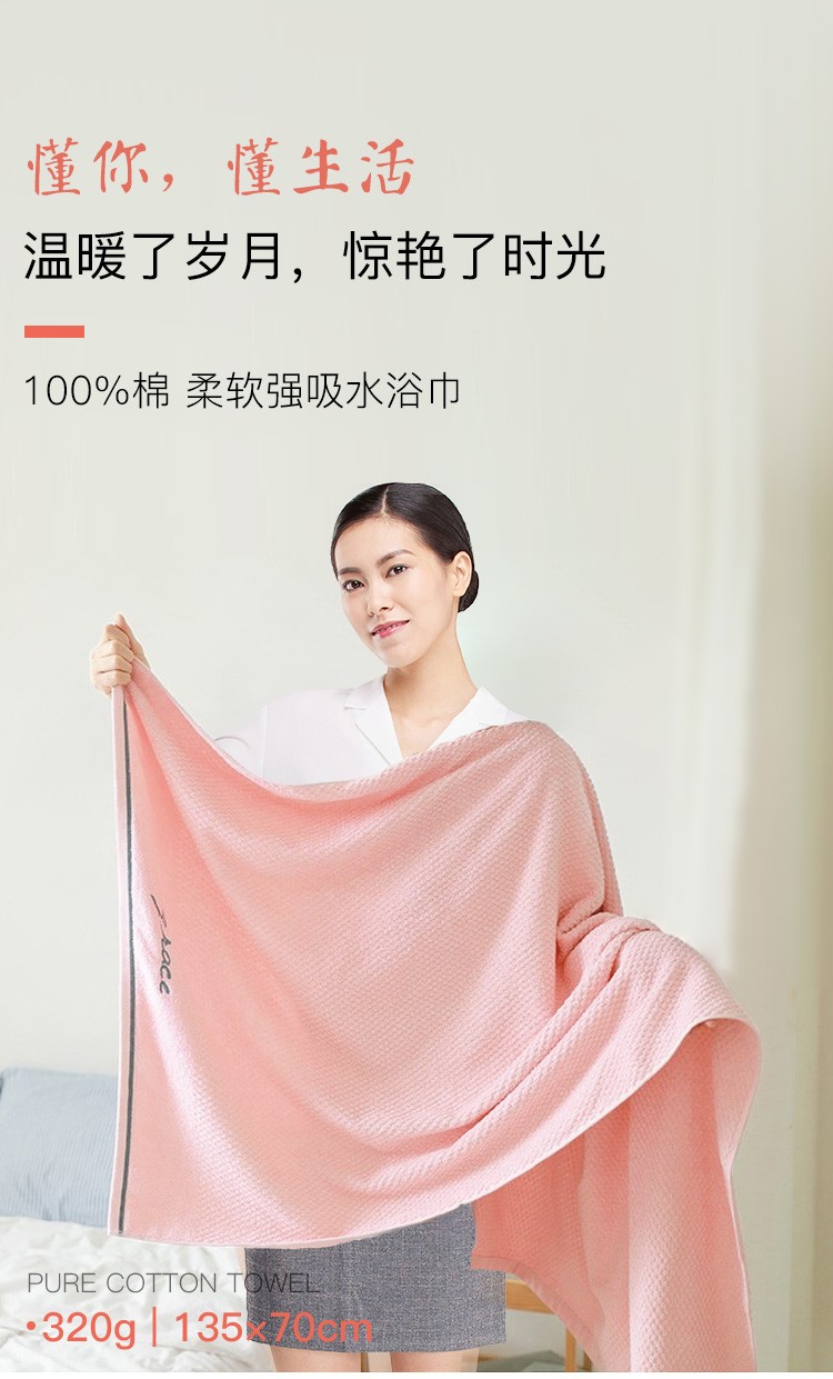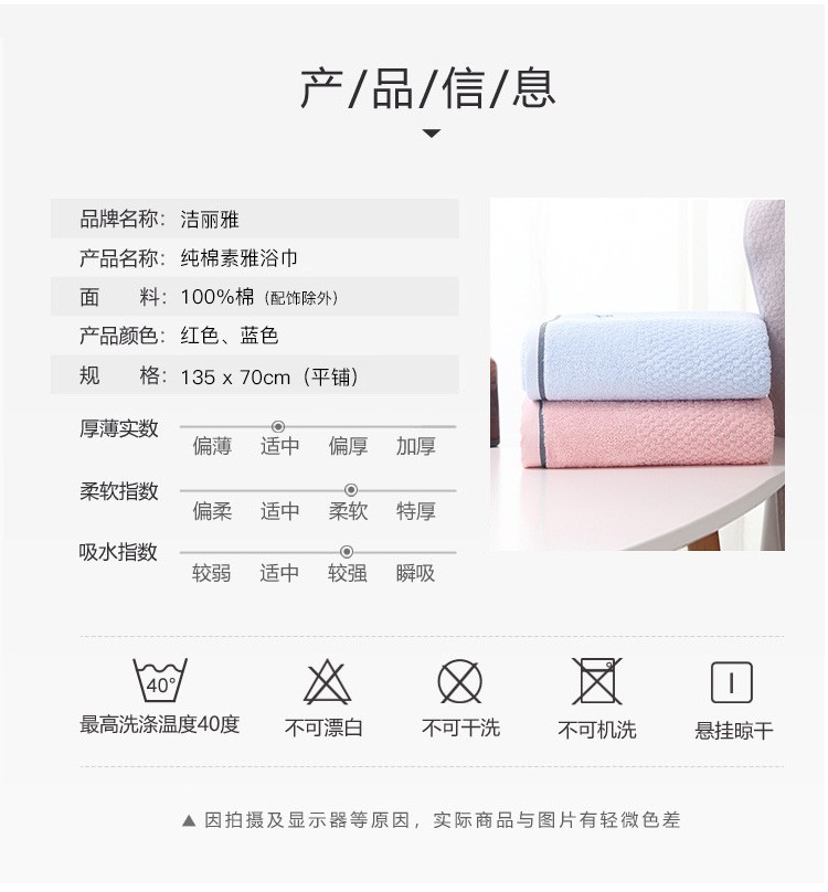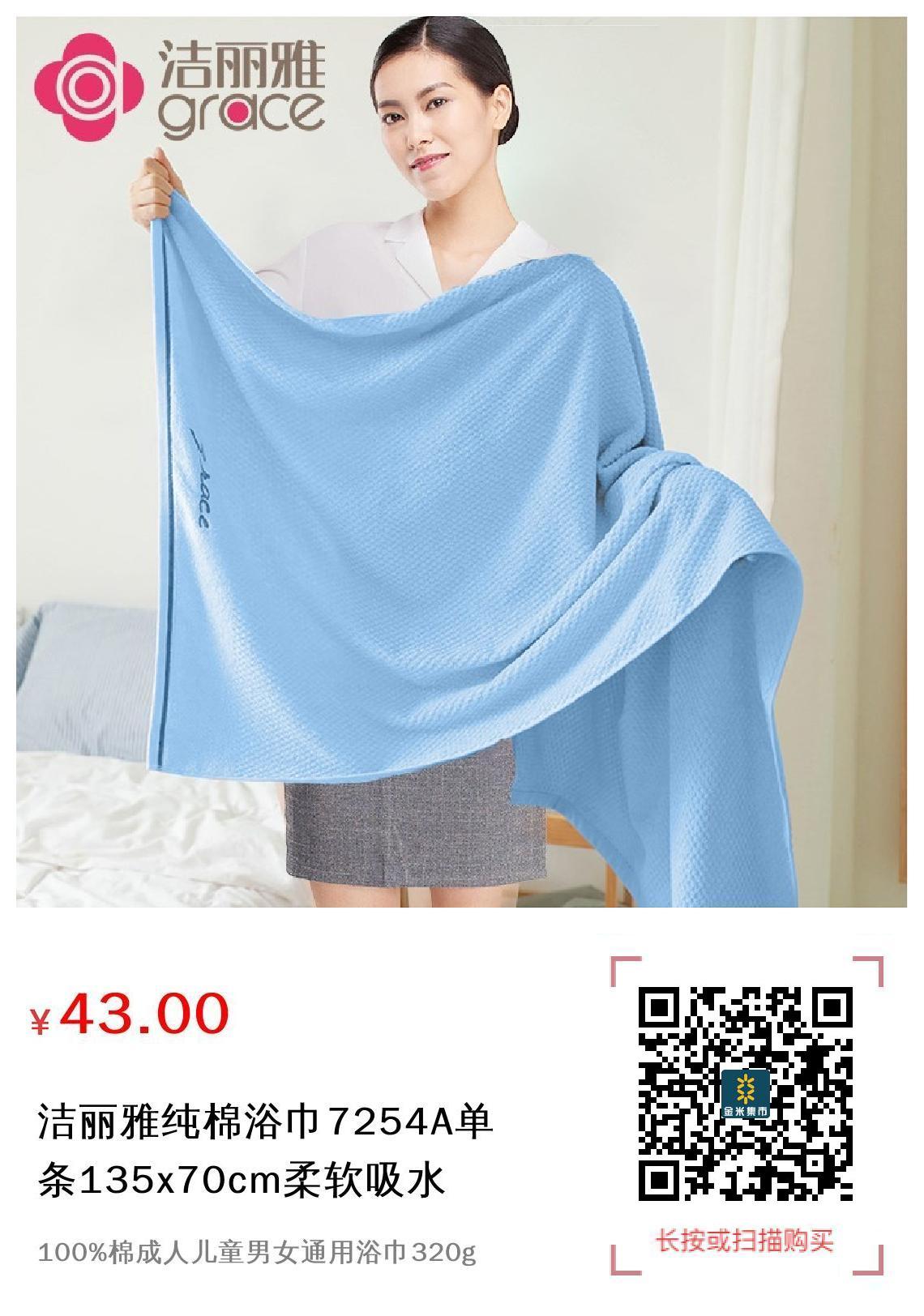 现金/积分 洁丽雅纯棉浴巾7254A单条135x70cm柔软吸水