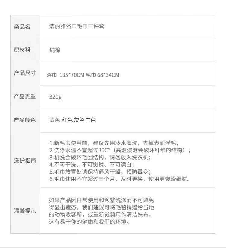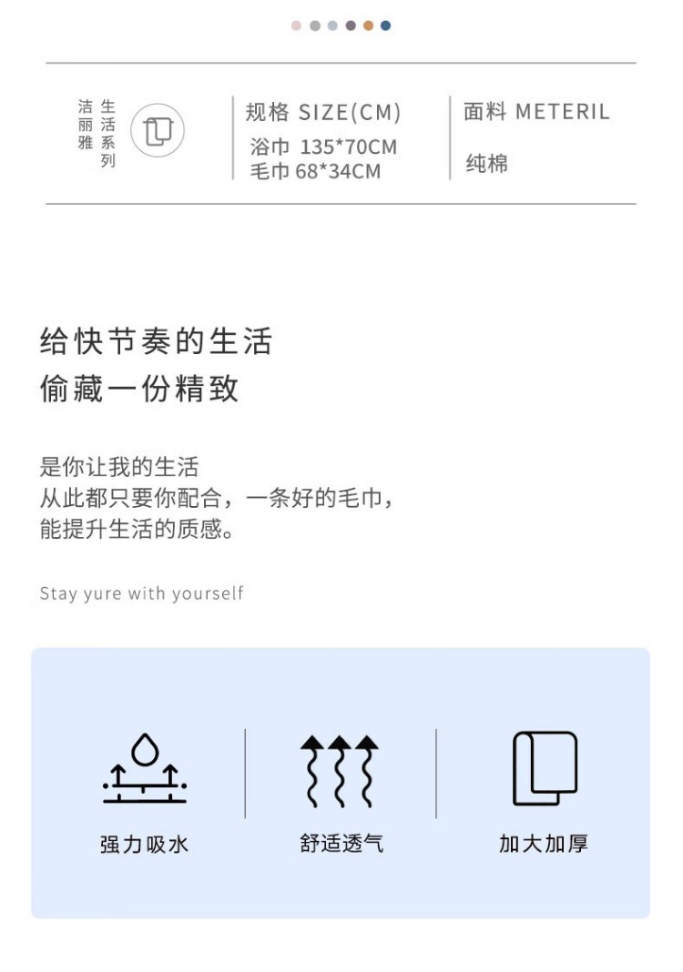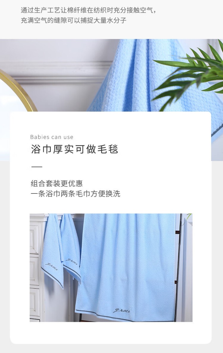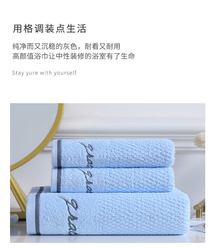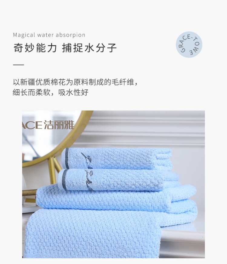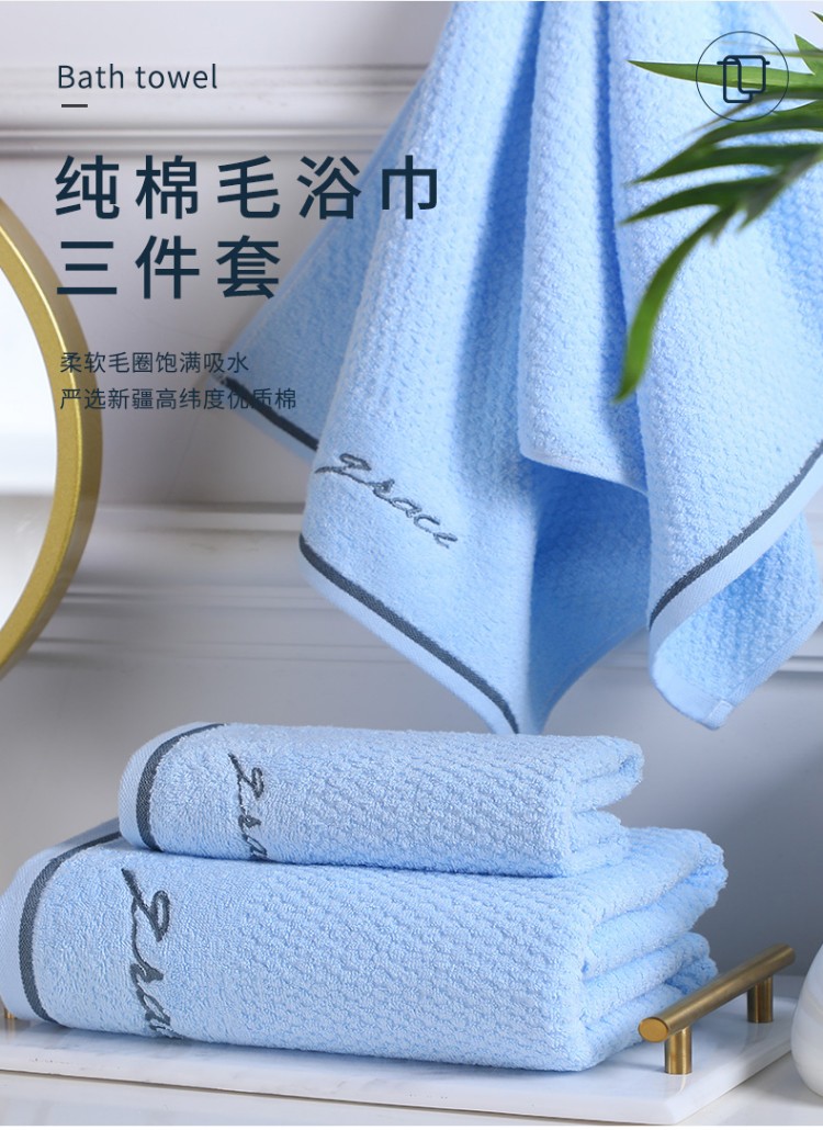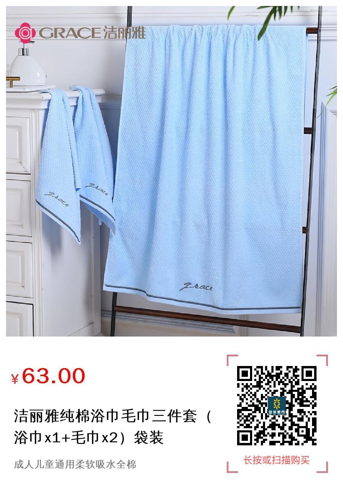 现金/积分 洁丽雅纯棉浴巾毛巾三件套(浴巾x1+毛巾x2)袋装