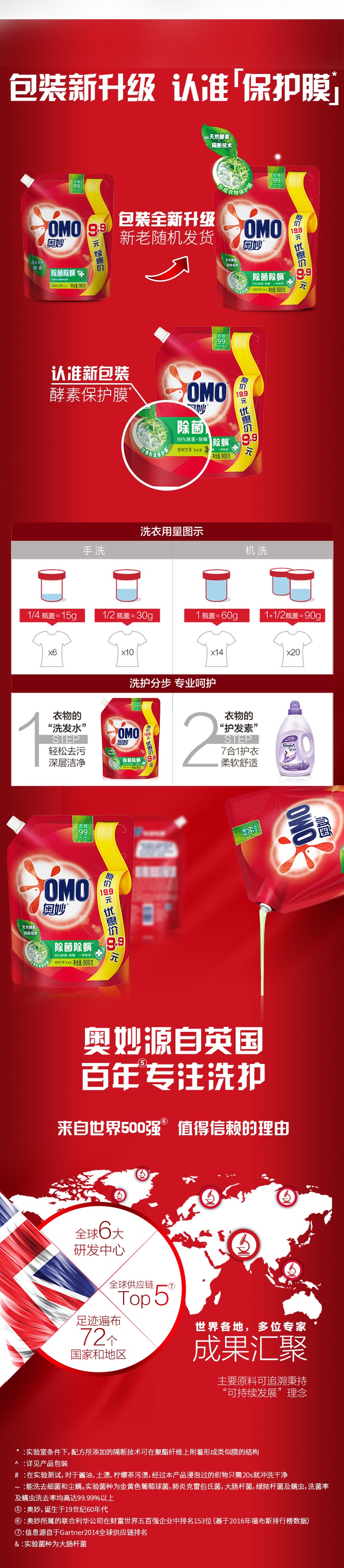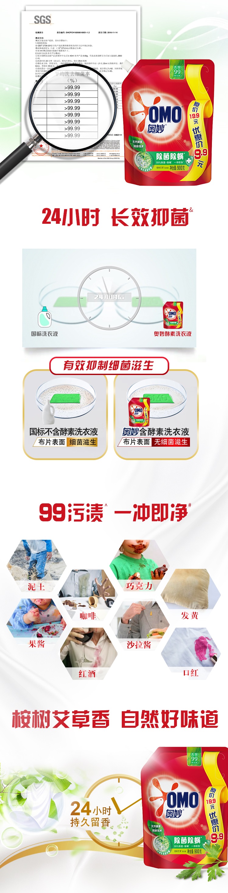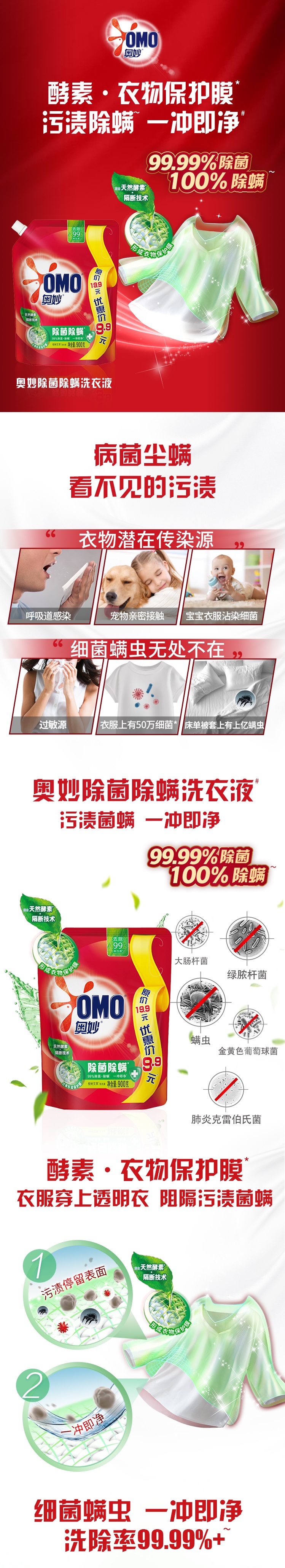 【优品】奥妙除菌除螨洗衣液900G(袋装)3包套装