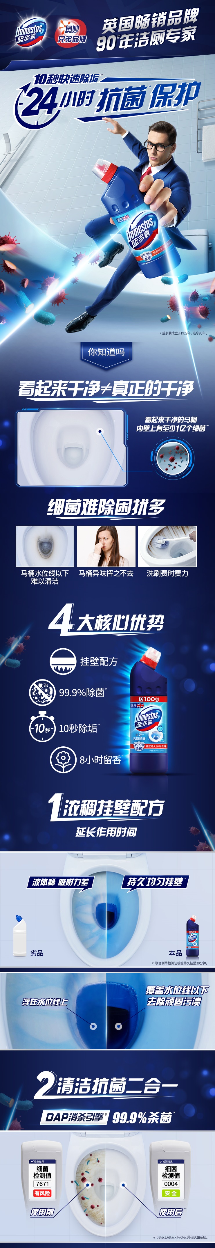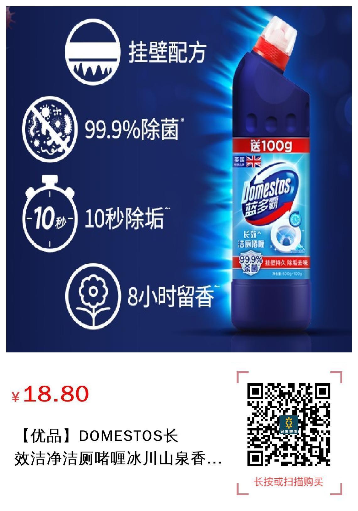 【优品】DOMESTOS长效洁净洁厕啫喱冰川山泉香600G