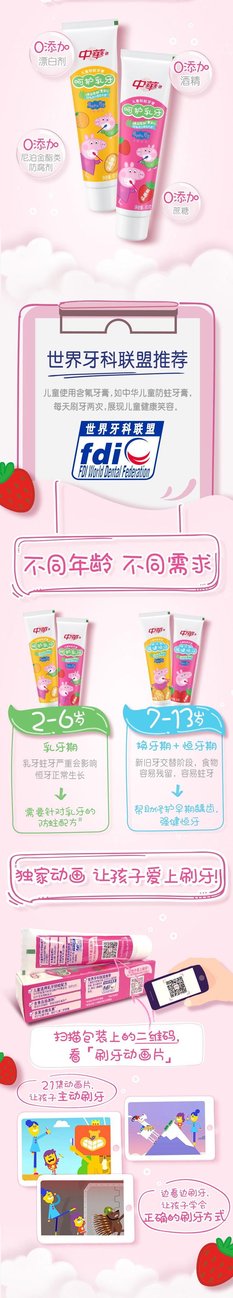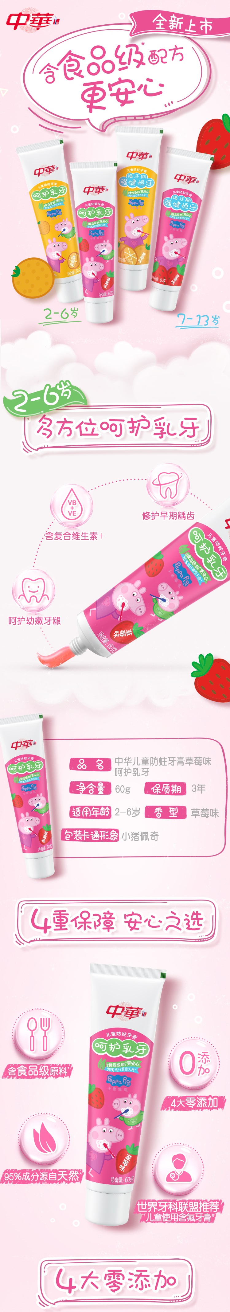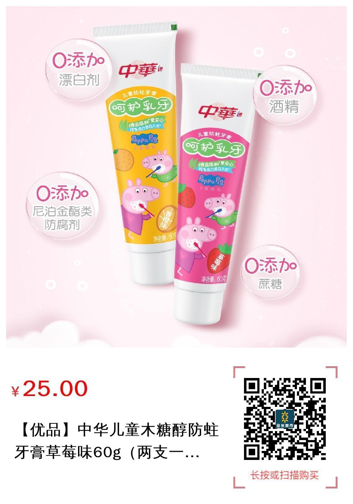【优品】中华儿童木糖醇防蛀牙膏草莓味60g(两支一组)