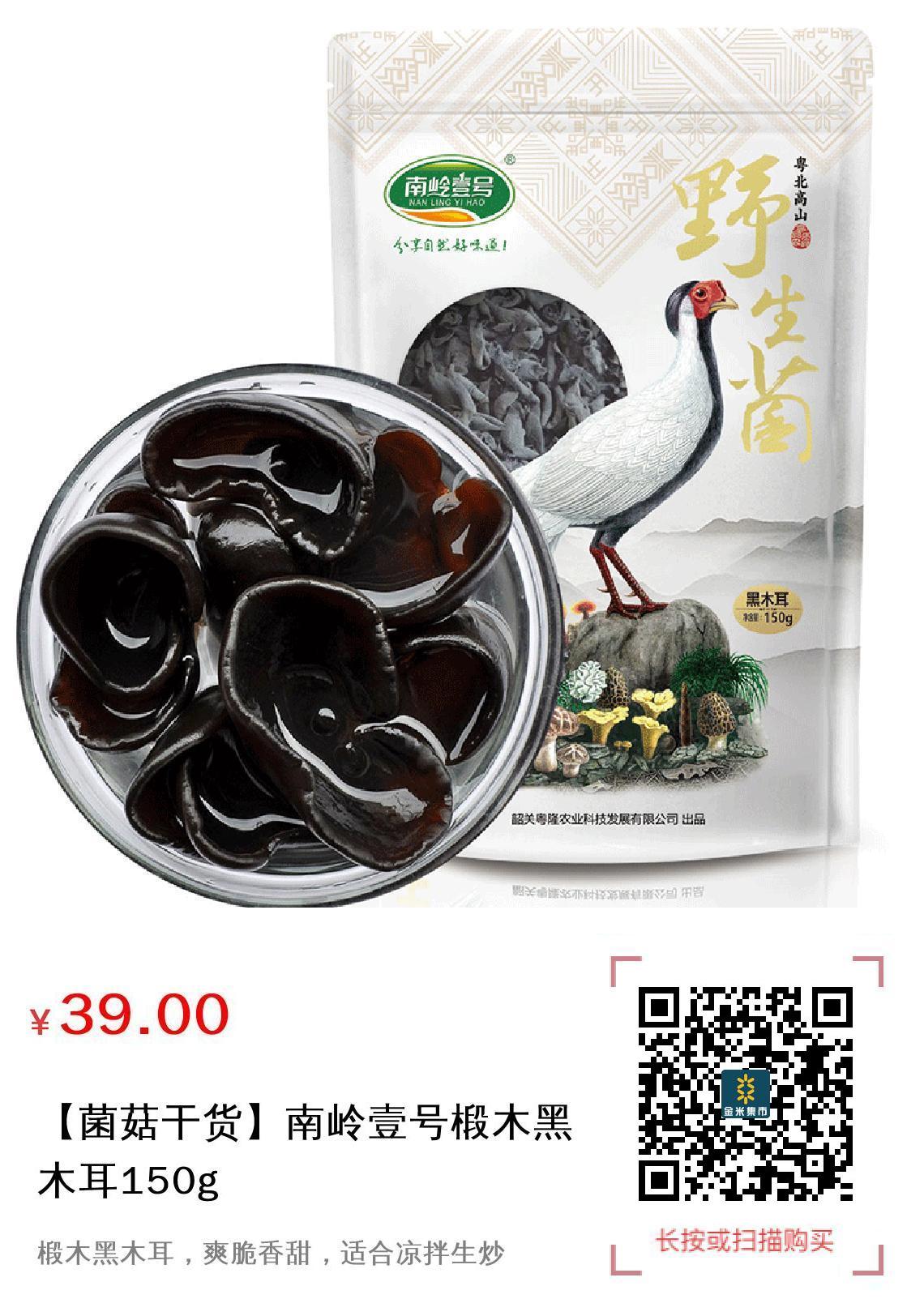 现金/积分 【菌菇干货】南岭壹号椴木黑木耳150g
