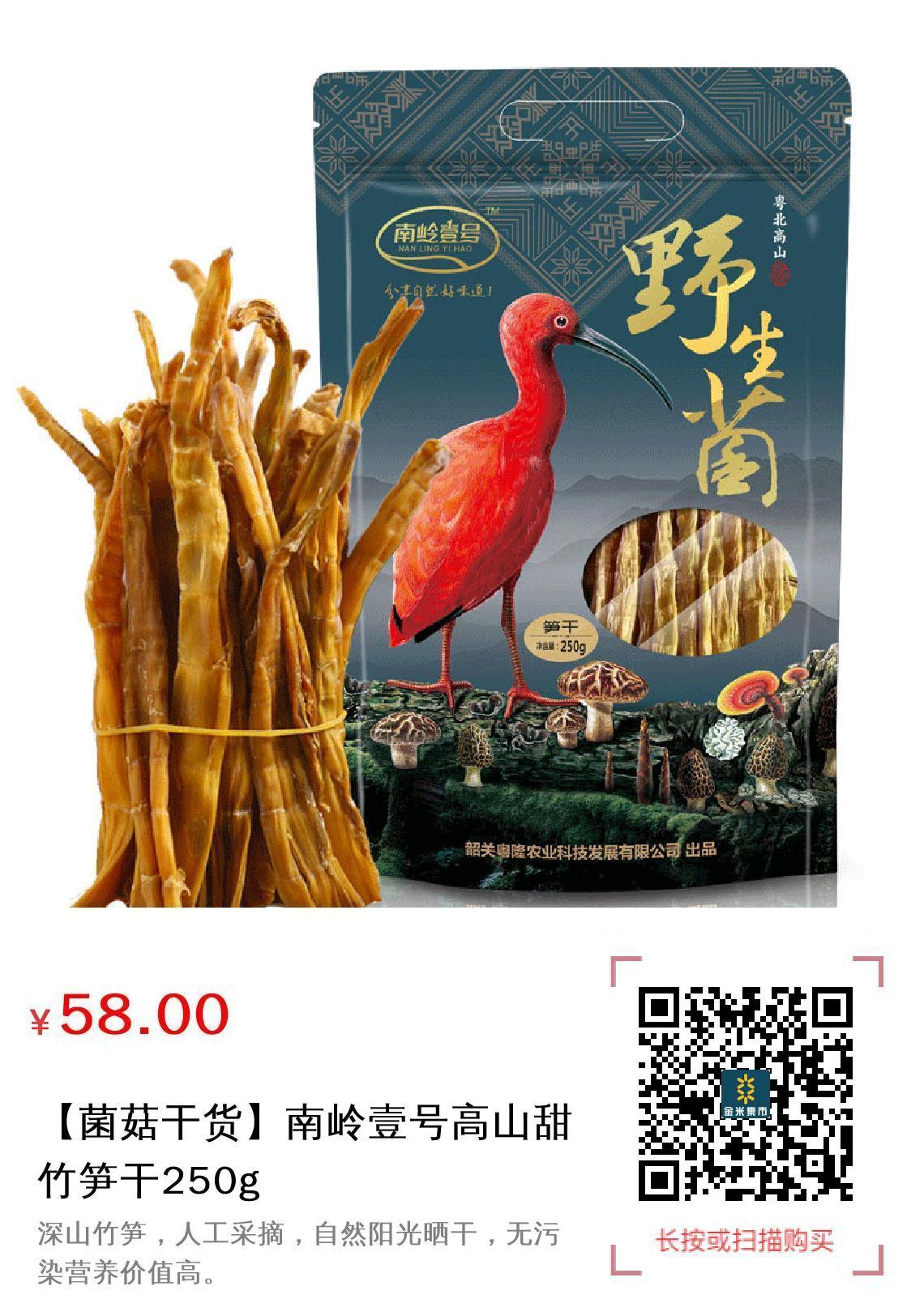 现金/积分 【菌菇干货】南岭壹号高山甜竹笋干250g