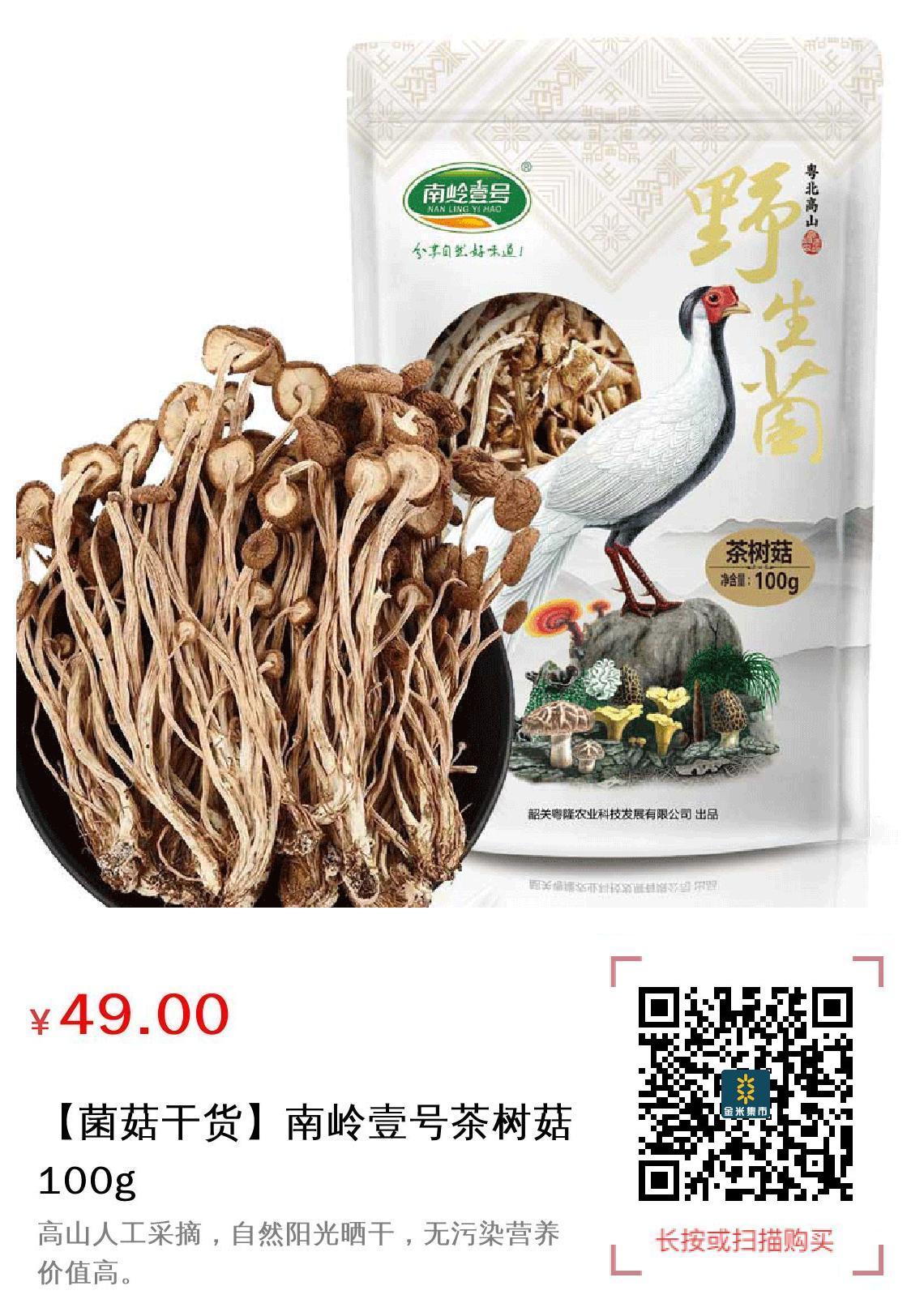 现金/积分 【菌菇干货】南岭壹号茶树菇100g
