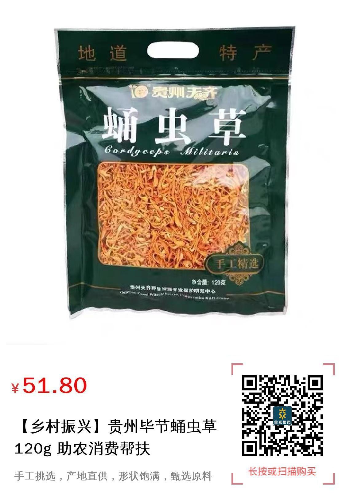 现金/积分 【乡村振兴】贵州毕节蛹虫草120g 助农消费帮扶