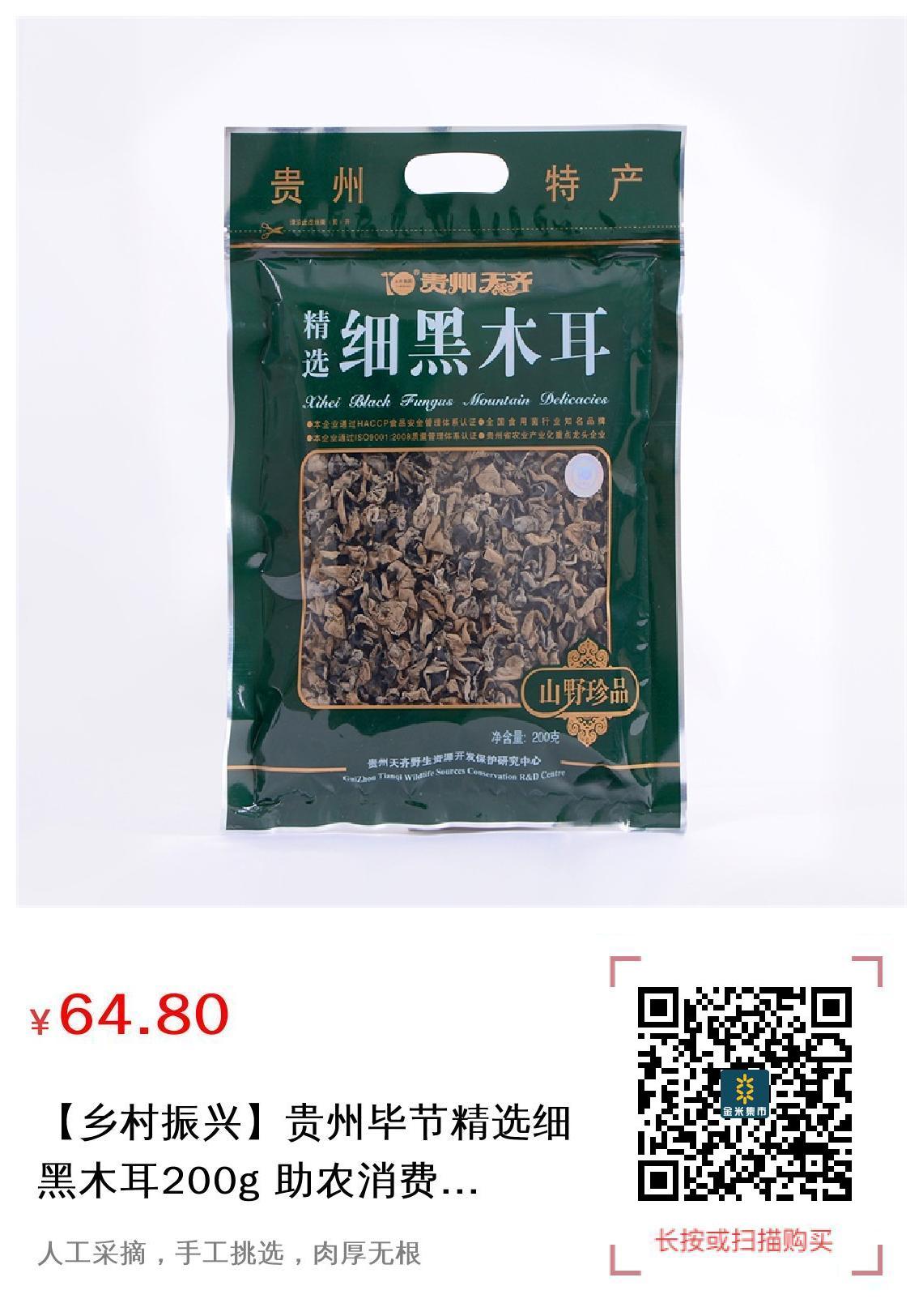 现金/积分 【乡村振兴】贵州毕节精选细黑木耳200g 助农消费帮扶
