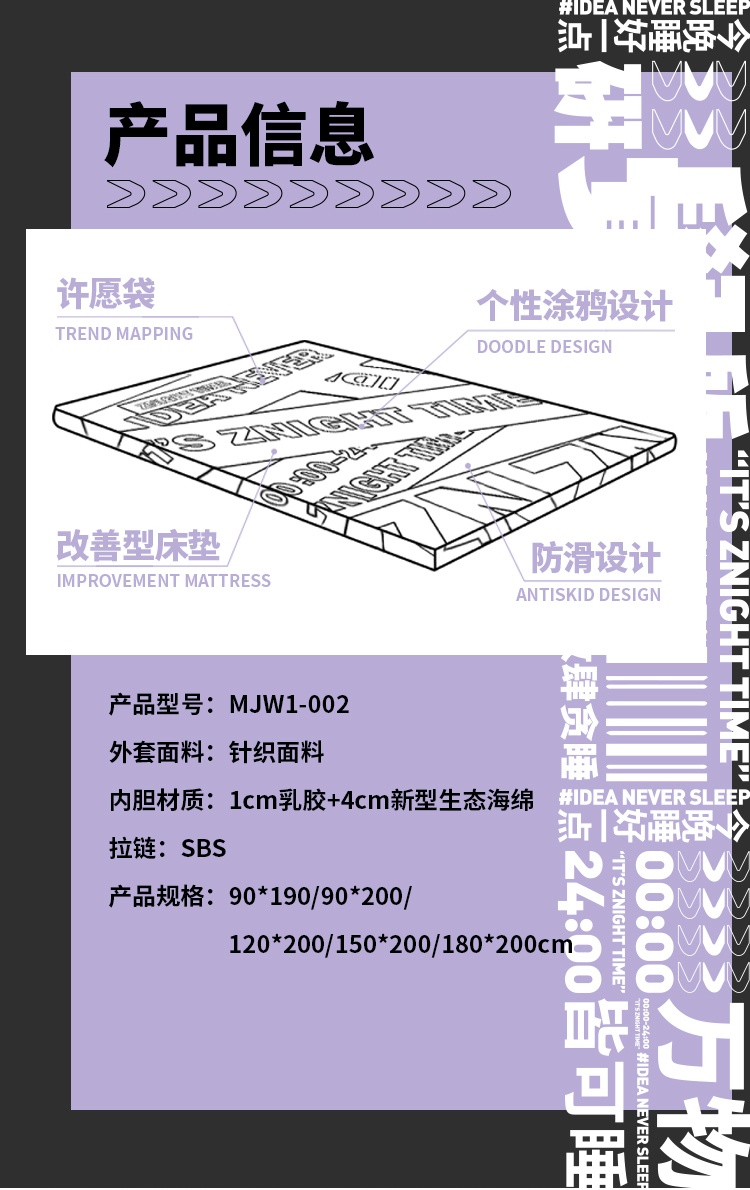 现金/积分 芒果盒子 慕思今晚 烦恼消除垫MJW1-002 涂鸦色180x200x5cm