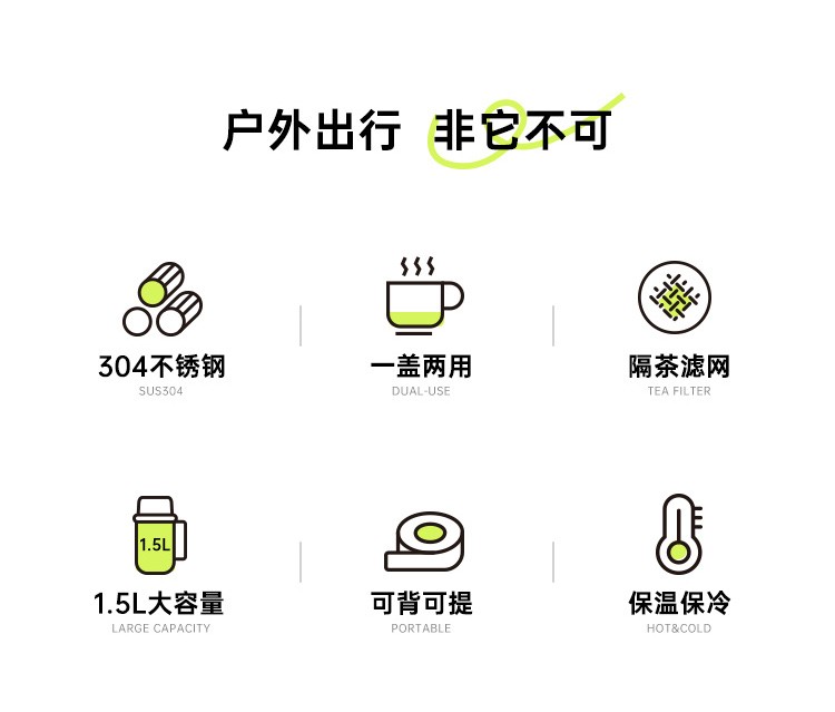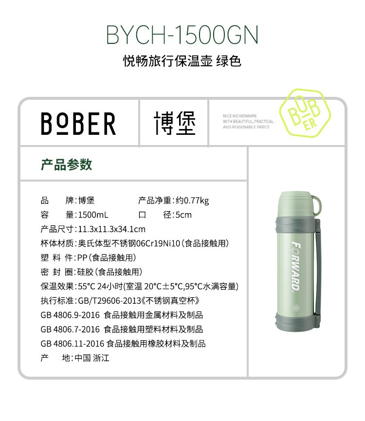 现金/积分 博堡 1500mL悦畅旅行保温壶BYCH-1500