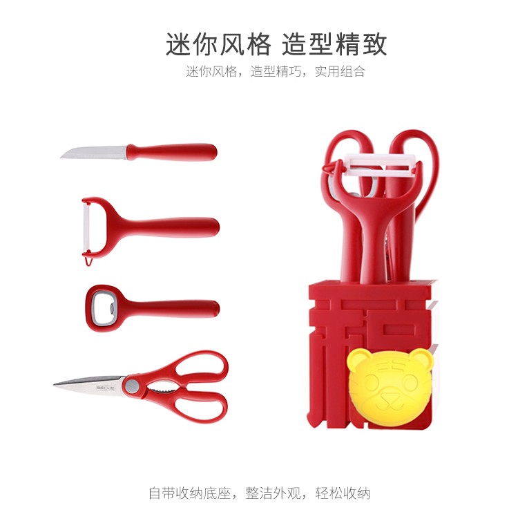 水果刀 瓜果刨 厨房剪 开瓶器 刀座(五件套)