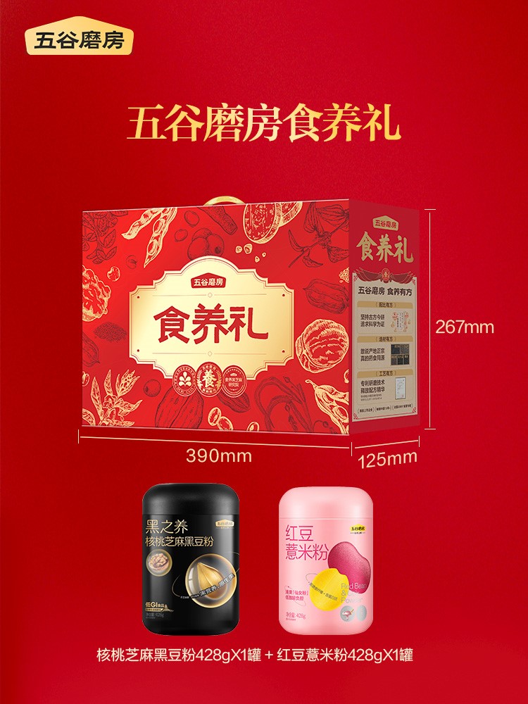 五谷磨房-食养礼礼盒856g(核桃芝麻黑豆粉+山药薏米芡实粉)