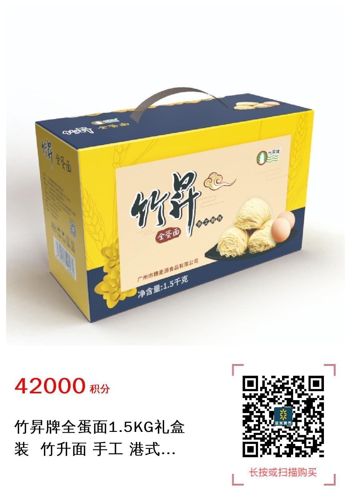 推广 竹昇牌全蛋面1.5KG礼盒装 竹升面 手工 港式风味 非油炸 箱装 火锅面条