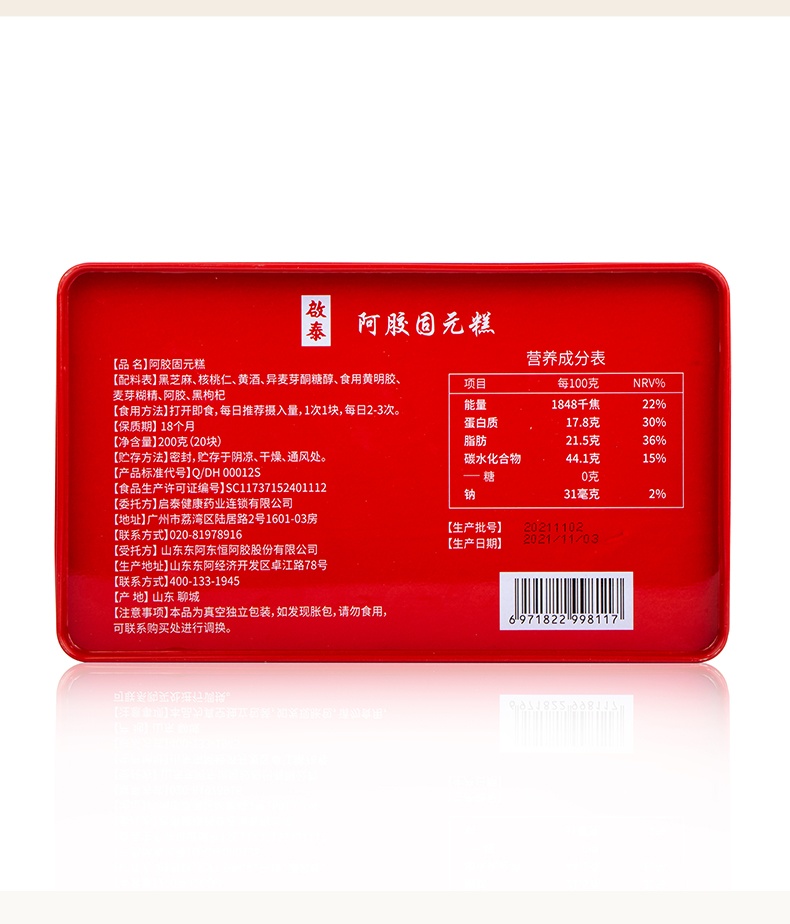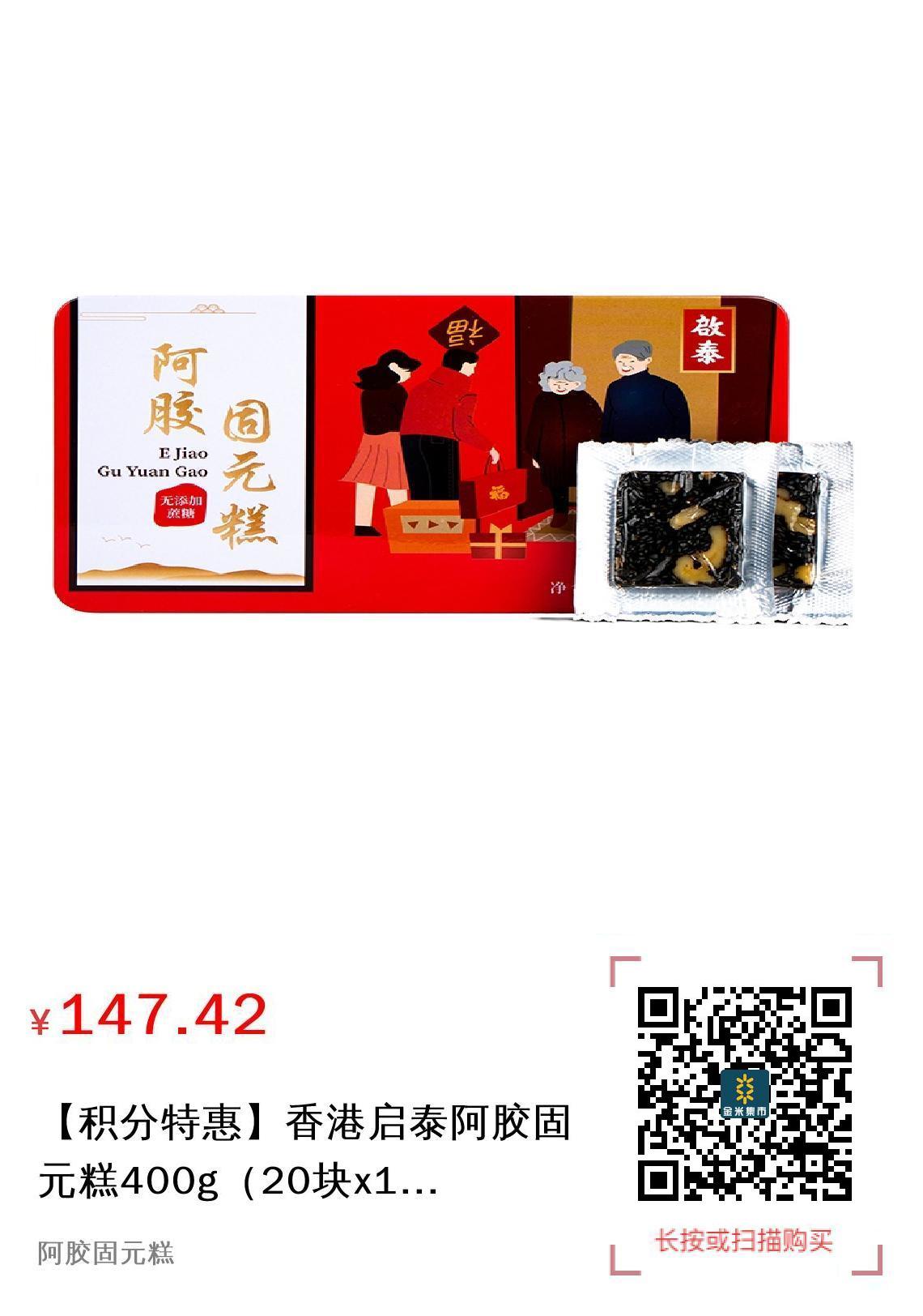 现金/积分 【积分特惠】香港启泰阿胶固元糕400g(20块x1盒x200G)x2盒