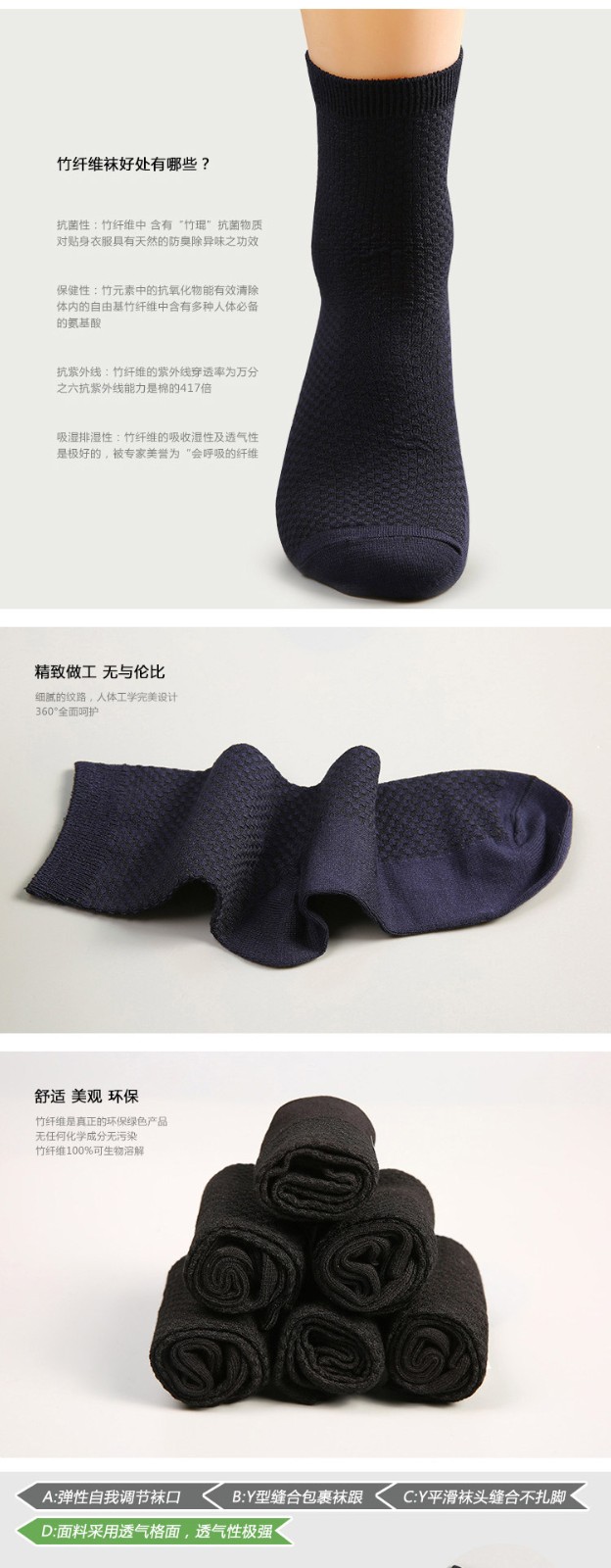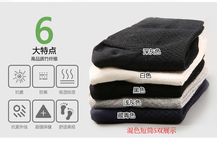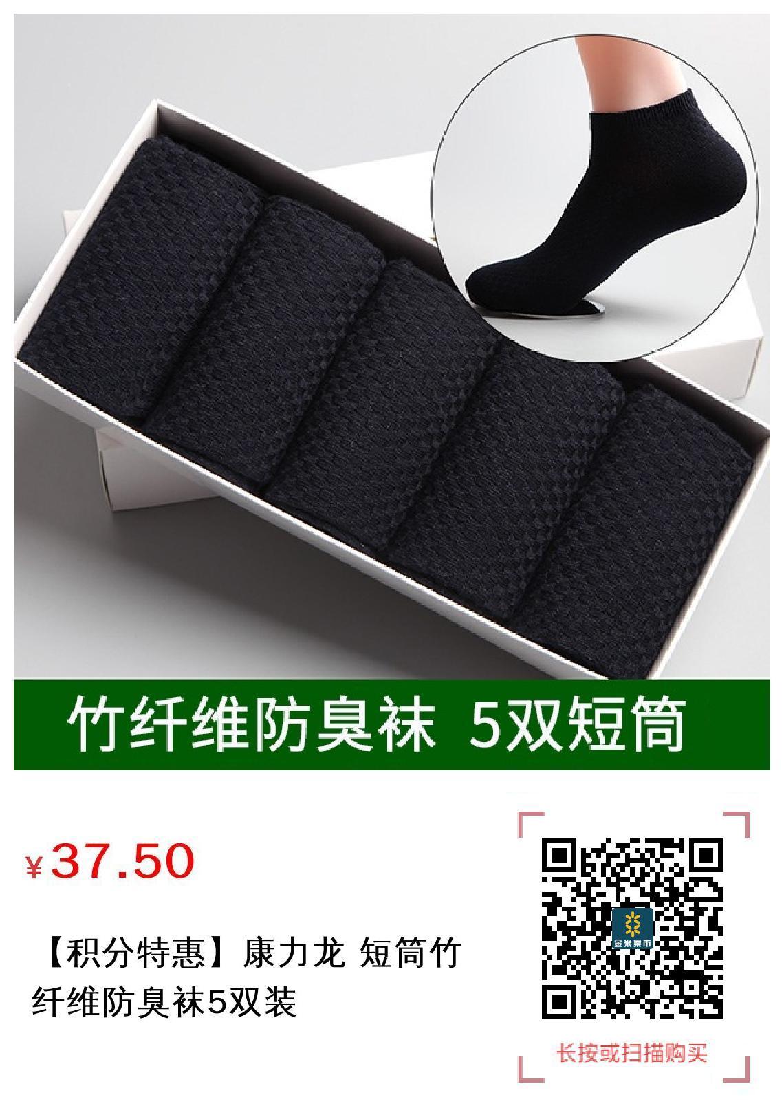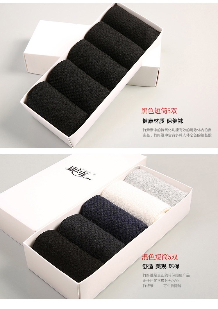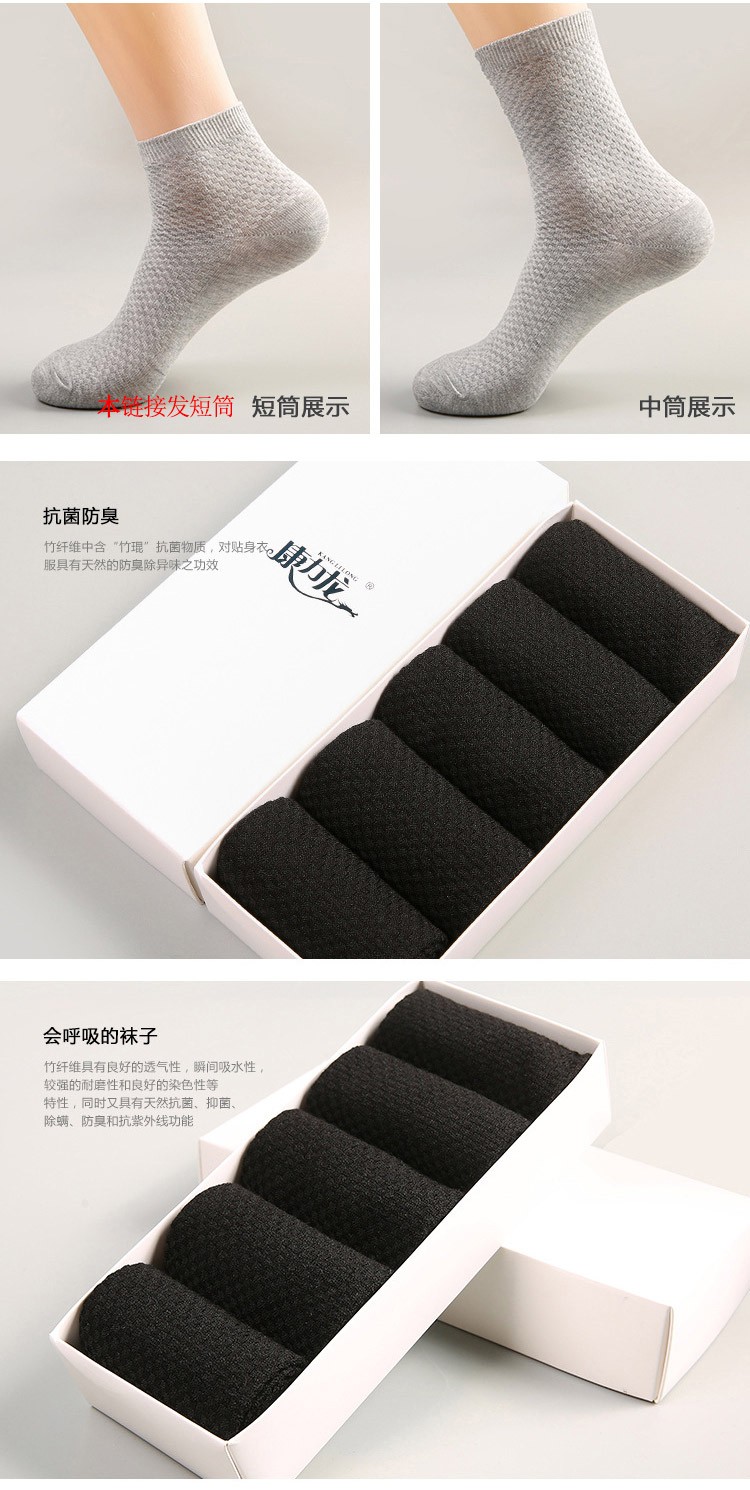 【积分特惠】康力龙 短筒竹纤维防臭袜5双装