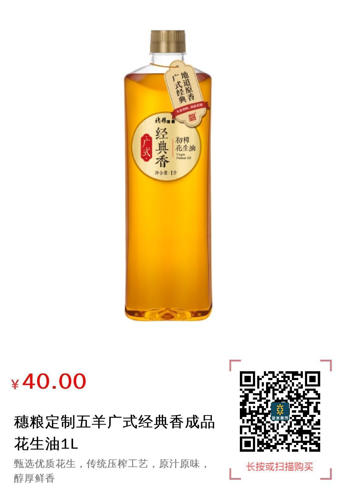 现金/积分 穗粮定制五羊广式经典香成品花生油1L