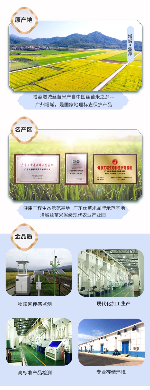 公司是增城丝苗米省级现代农业产业园实施主体之一。旗下增荔增城丝苗米种植基被广东省农业农村厅评为广东丝苗米品牌示范基地,中国经济改革研究基金会健康工程组委会评为健康工程生态种植示范基地;出品的增荔增城丝苗米,是广州市首个“双地标农产品”,被农业农村部农产品质量安全中心发布的全国名特优品农产品名录收集,在第三界中国·黑龙江国际大米节上获评“籼米十大好吃米饭”。